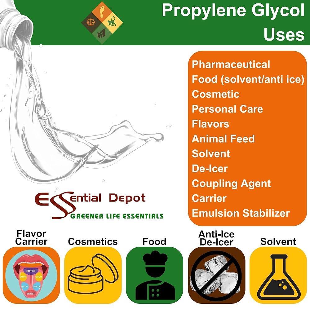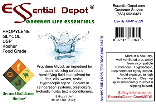 بروبيلين جلايكول - PG - 1 لتر (وزن صافي 18 أونصة) - USP - موافق للشريعة اليهودية - درجة الغذاء - حاوية HDPE محكمة الغلق وقابلة للإغلاق، آمنة للاستخدام في الميكروويف (إزالة ختم الرقائق المعدنية)، آمنة للاستخدام في الفريزر
