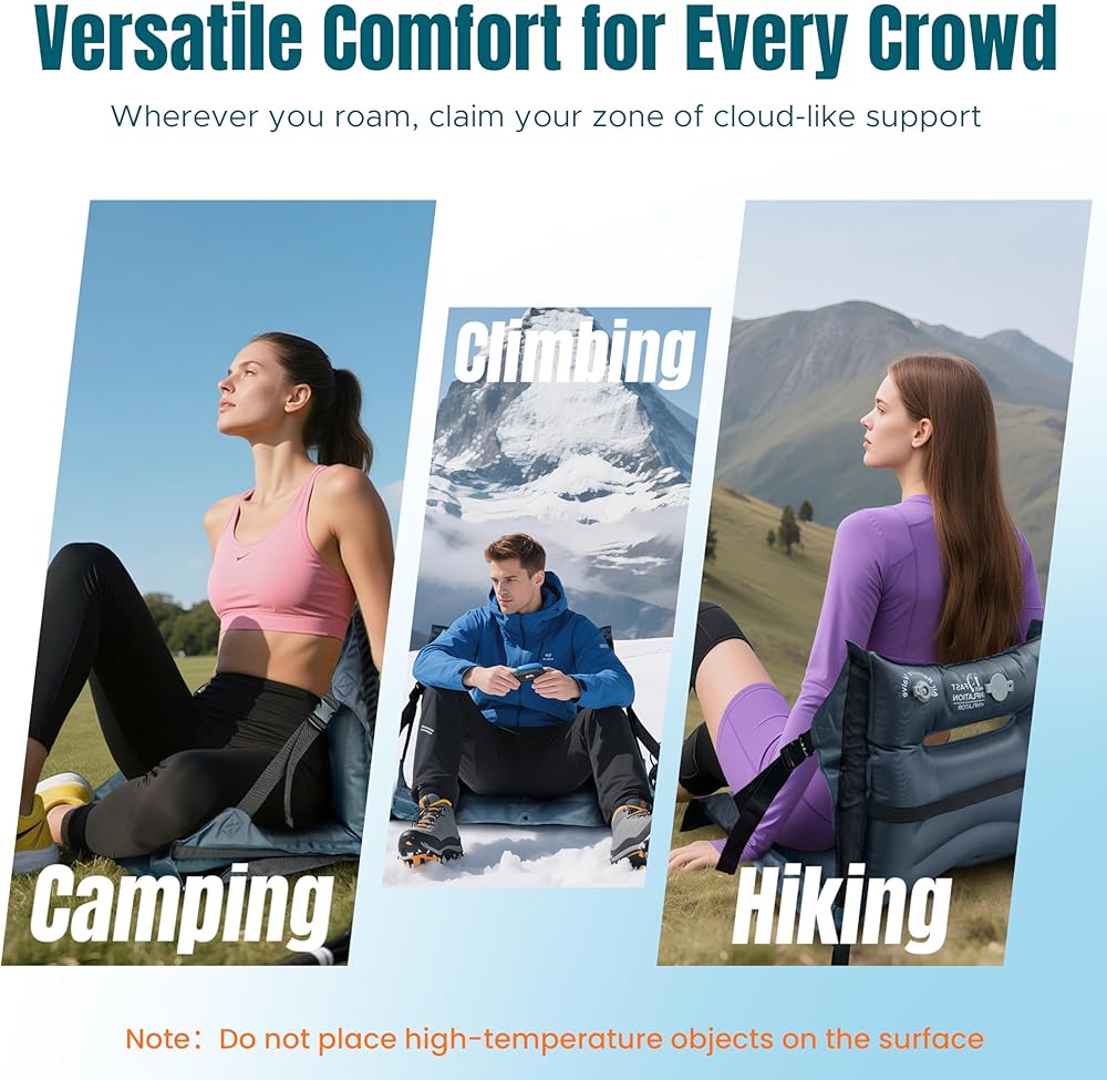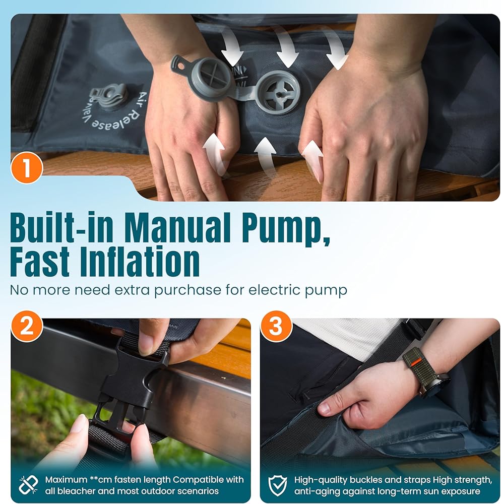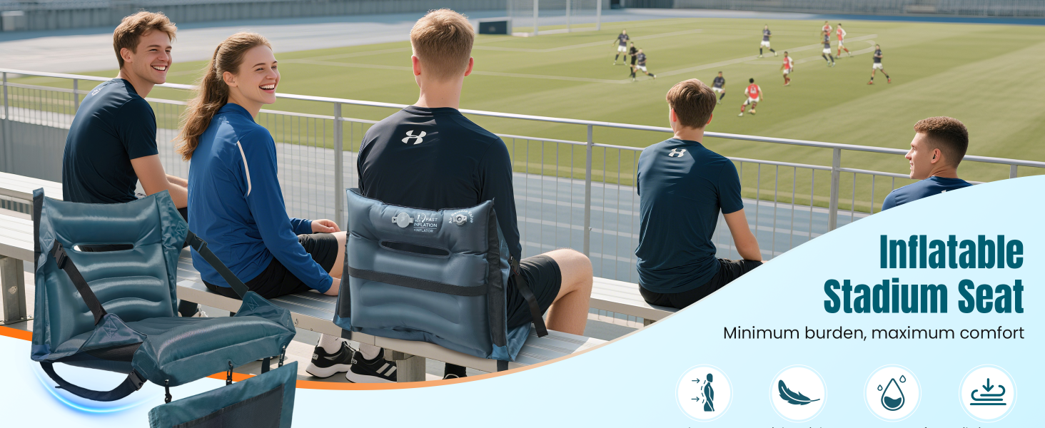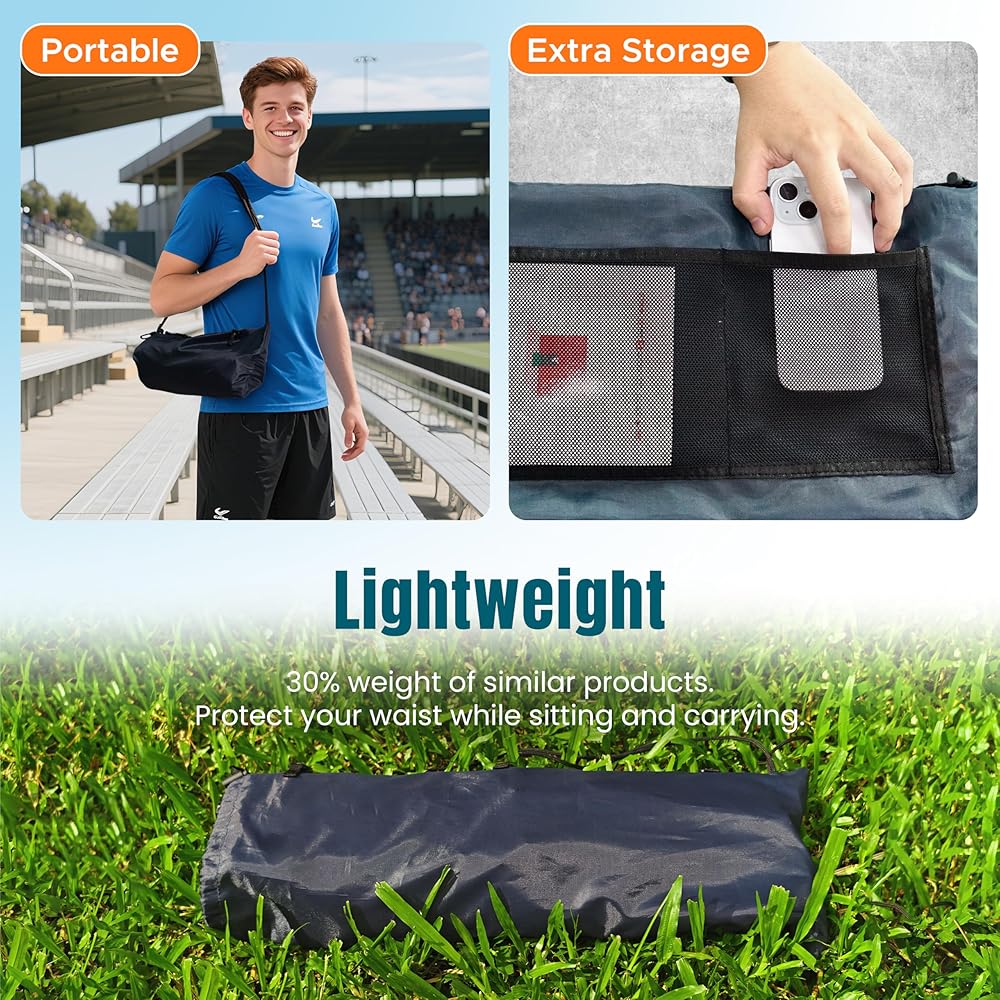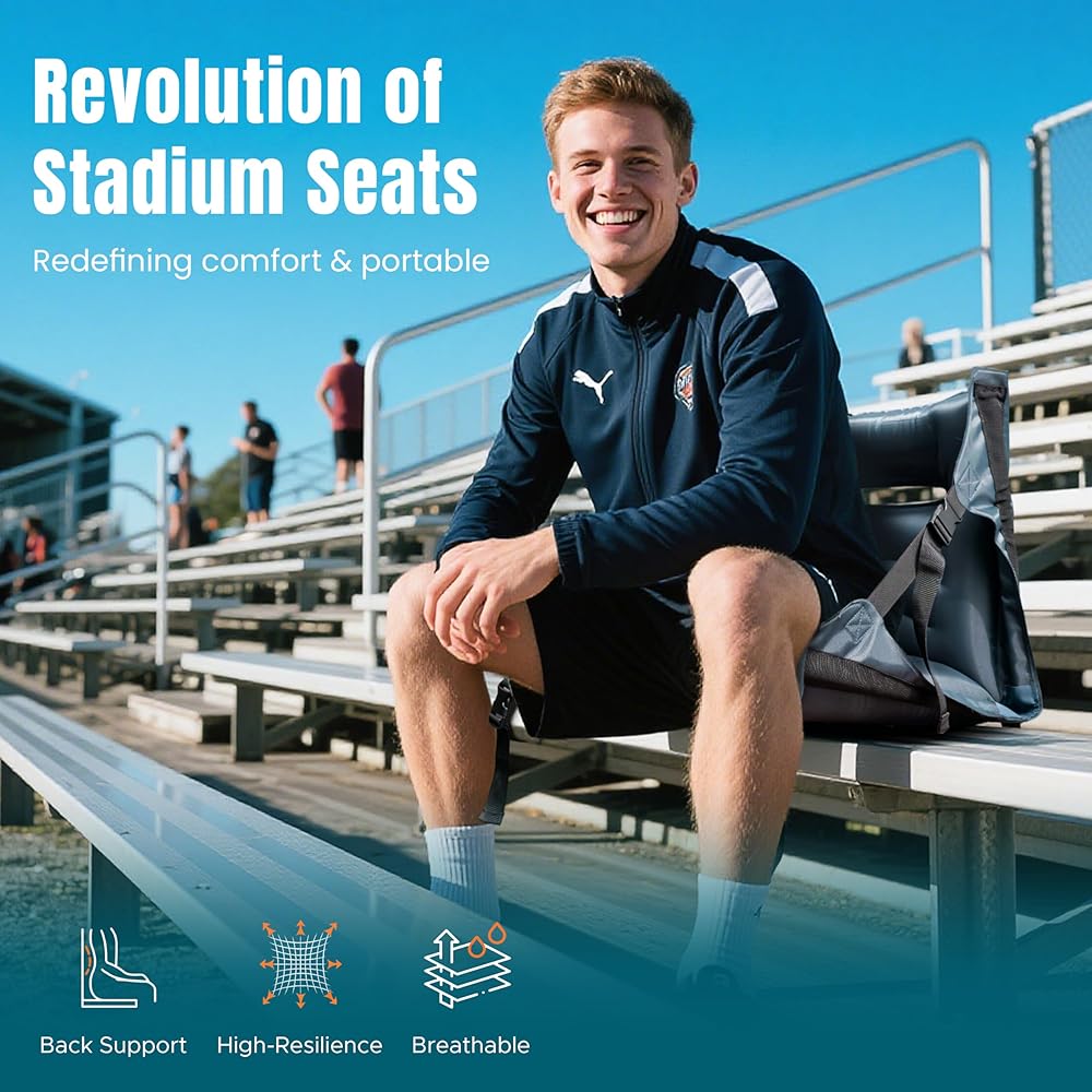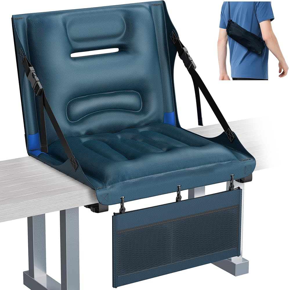 مقاعد استاد محمولة قابلة للنفخ مع دعم للظهر، كراسي تبييض مريحة مع ظهر ووسادة [تبريد، مقاومة للماء، خفيفة الوزن] مع حقيبة تخزين وحمل 2 في 1، مثالية للمناسبات الرياضية/الخارجية