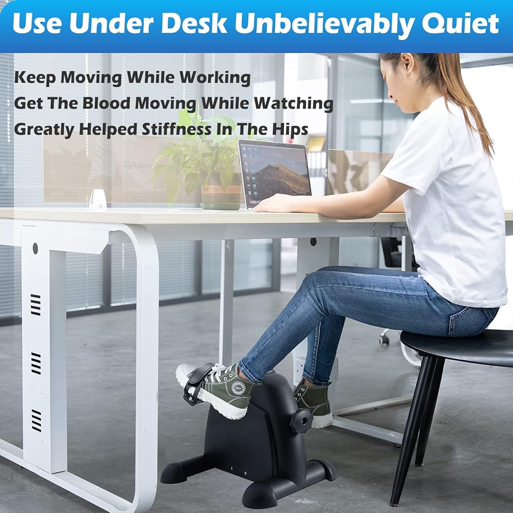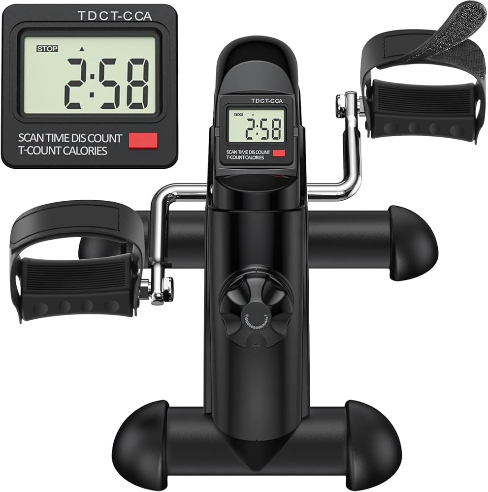 TABEKE Mini Exercise Bike for Arm/Leg Exercise, Mini Exercise Peddler with LCD Display; The quiet pedal exerciser is compact to easily fit under any desk for use in the office or at home and utilizes adjustable magnetic resistance for a customizable workout. The versatile exerciser features nonslip pedals with adjustable straps and can also be used on a tabletop for low impact arm exercise. Features: ✔ Can be used both on floor for leg exercise and on desk for arm exercise. ✔ Smooth and Quite Pedal Operation,easily fits under your desk. ✔ Non-slip Finger Grips and Slip-free Feet to prevent sliding and ensure safety. ✔ Easy to Read Screen to display time, distance, speed,Calories and RPM. ✔ Strengthen Tone + Increase Circulation + Improve Stamina Relieve Tension ✔ Strap is included to prevent slipping and sliding. ✔ Easy to Assemble, compact and portable Specifications: Net Weight: 9lbs Material: Steel + Plastic Dimensions:14.7''L x 11.4''H x 13.7''W Package Included: 1x Pedal Exercise 1x Instruction; 1x PVC Mat; 1x Fixing Strap