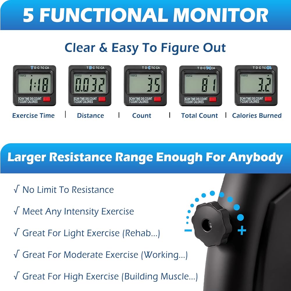 • 💪【ADJUSTABLE RESISTANCE】The adjustable resistance knob of the exercise peddler can meet different physical conditions and bring a personalized experience. For beginners, this low-impact exercise is excellent and ideal for rehabilitation after surgery or injury. Specially designed for the elderly and the rehabilitation.