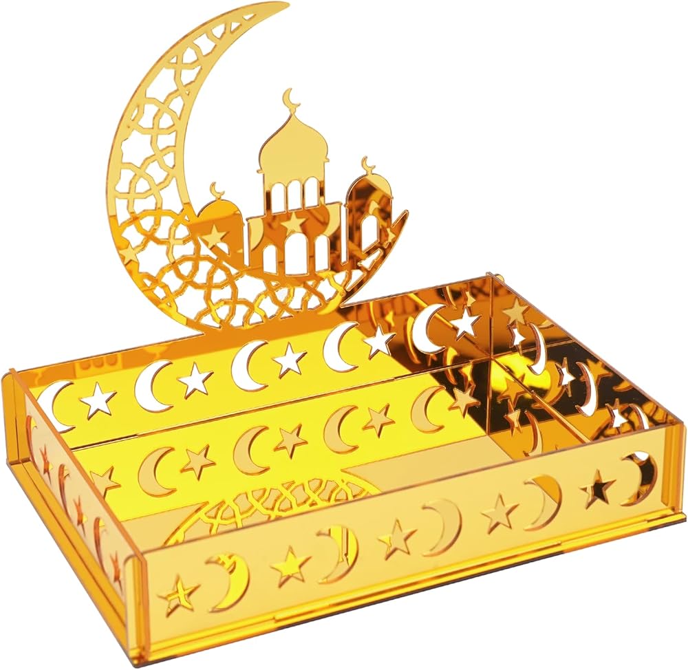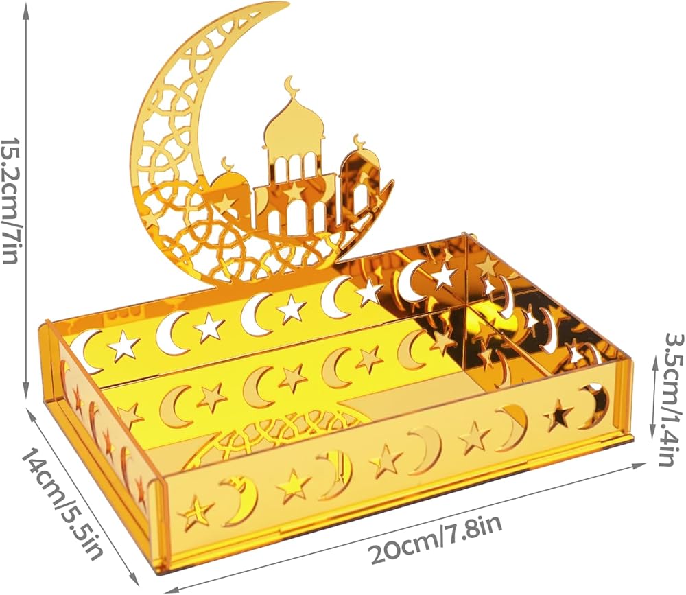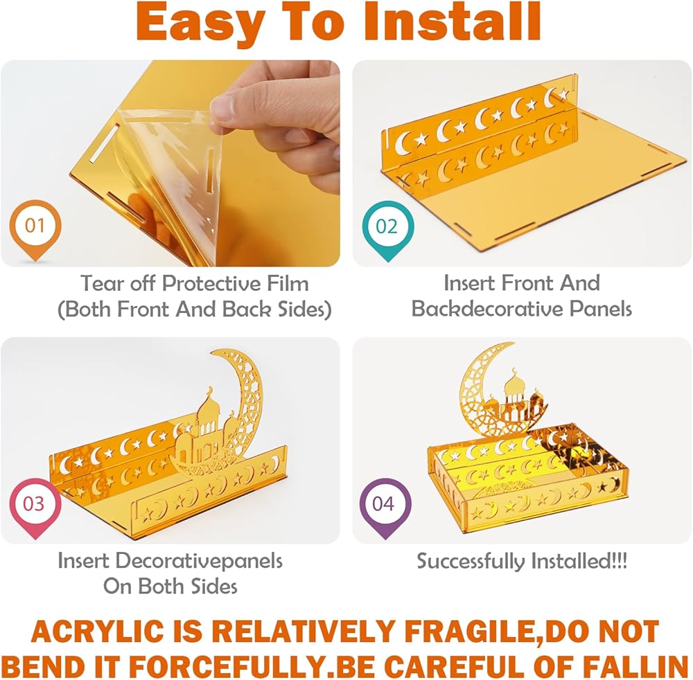 • ELEGANT DESIGN: Beautiful acrylic mirror display set featuring two iconic Ramadan symbols - a crescent moon & star piece and a decorative castle piece