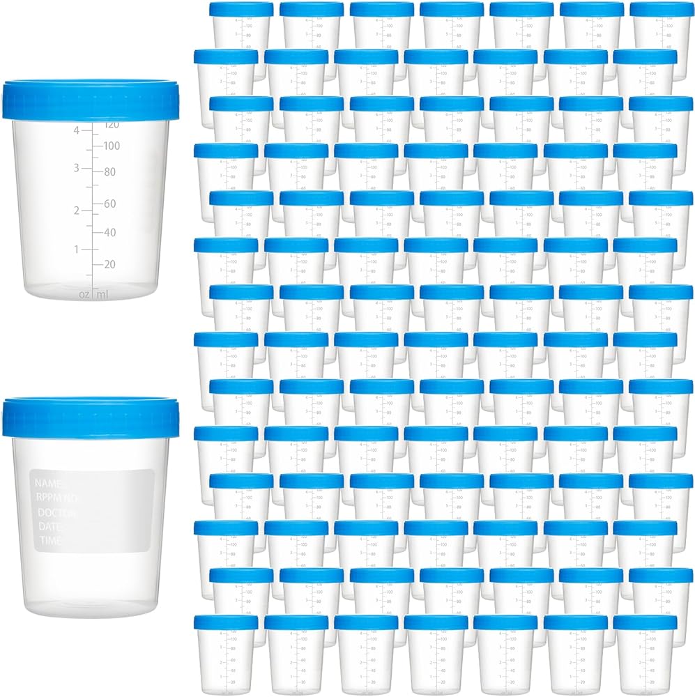 Practical Set Design: 30 pack practical set of 4 oz disposable specimen cups with leakproof screw lids meets multiple testing demands with blue lids for easy identification, disposable for hassle-free cleanup, great for regular health monitoring and lab use