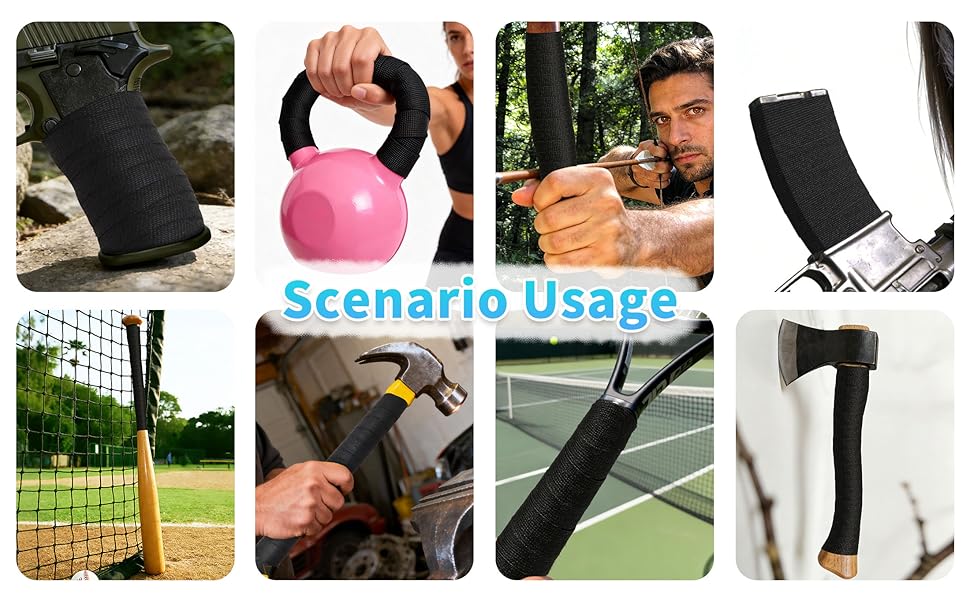 【شريط تكتيكي متعدد الأغراض】يُستخدم بشكل شائع لتغليف مجلات ومقابض الأسلحة النارية (البنادق والمسدسات والمسدسات والبنادق والبنادق والمجلات)، بينما مناسب أيضًا للمعدات الرياضية (الهوكي، البيسبول، الجولف، لاكروس، الدمبل، المضارب)، أدوات البستنة، معدات الصالة الرياضية، قضبان الصيد، مقابض الدراجة، والأدوات اليومية