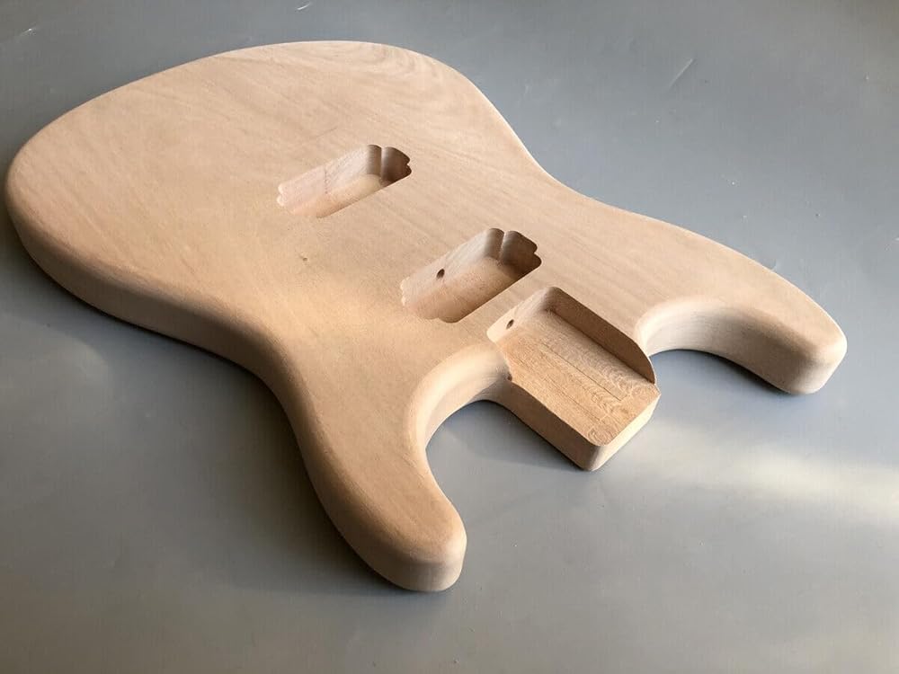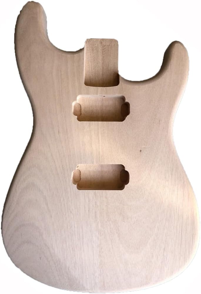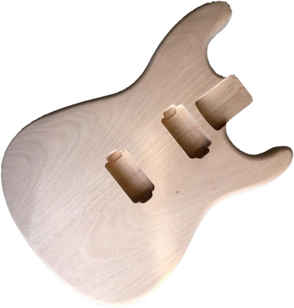 Mahogany wood Electric Guitar Body Unfinished. Made of solid wood with exquisite craftsmanship, durable to use. Body has been predrilled and polished, perfect for custom your own electric guitar. The guitar body has smooth surface, so you can paint and draw individual patterns on this blank surface whatever you like. Great gift for guitar luthiers and lovers, enjoy the fun brought by DIY.
