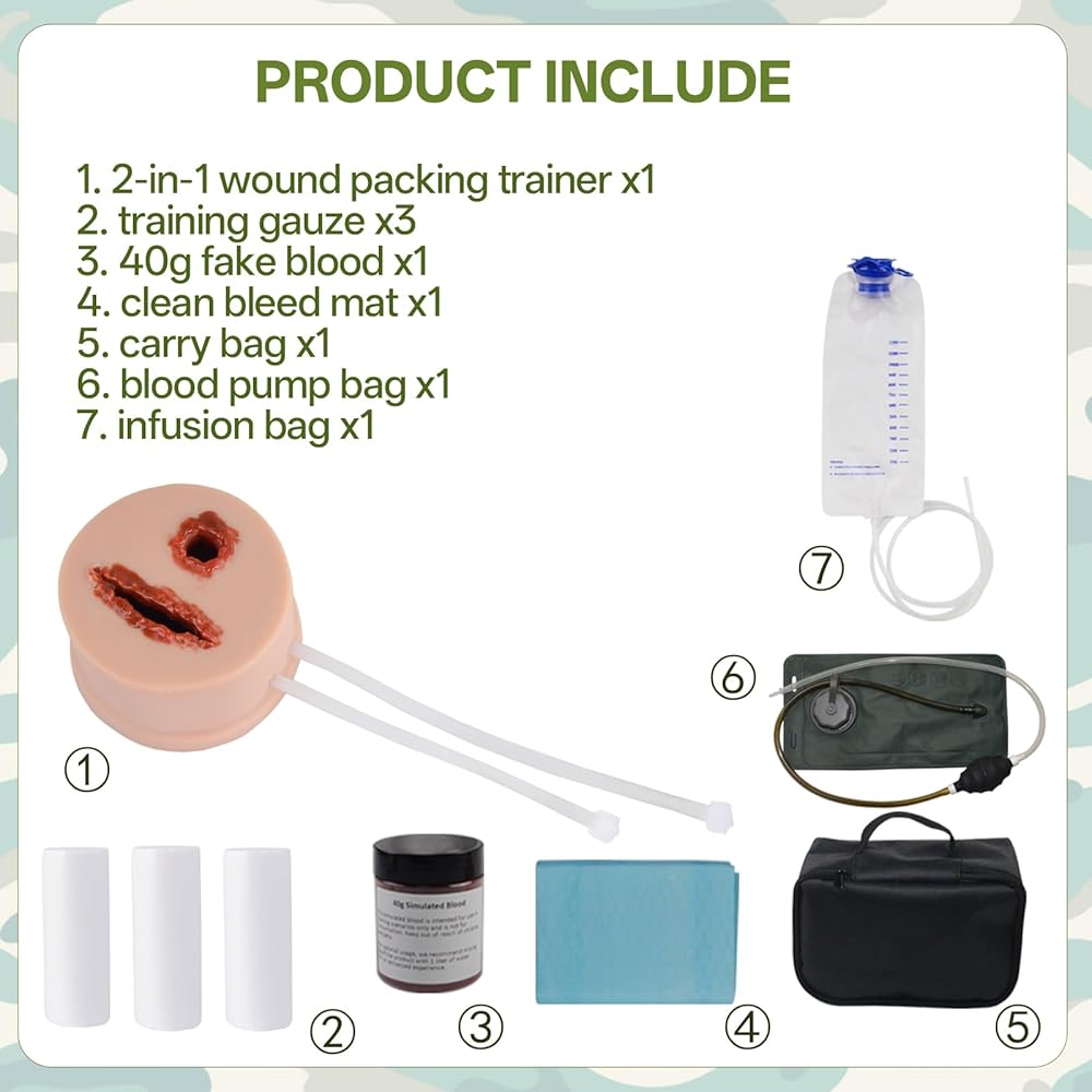 ALL-IN-ONE KIT: Each set comes with the bleeding control simulator, blood pumping system, training gauze packs, specialized blood simulation materials, and carrying case for medical education.