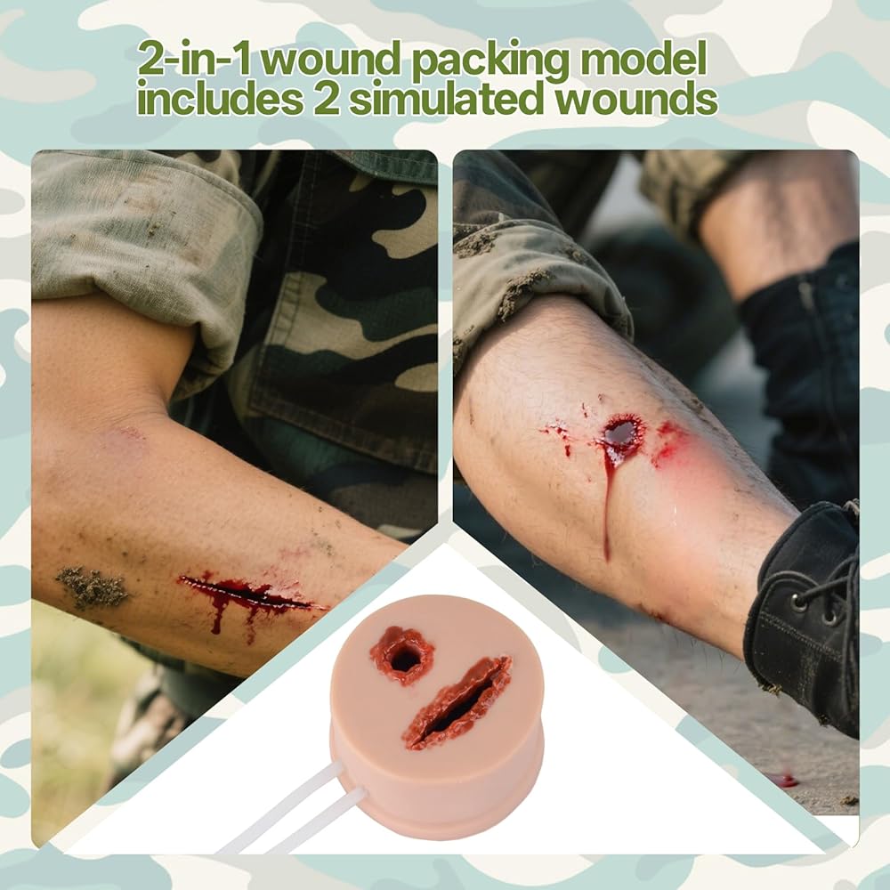 Versatile 2-in-1 Wound Design: Master two critical skills with one model. This wound packing trainer includes both a deep gunshot wound and a large laceration, providing comprehensive first aid training for different trauma scenarios.