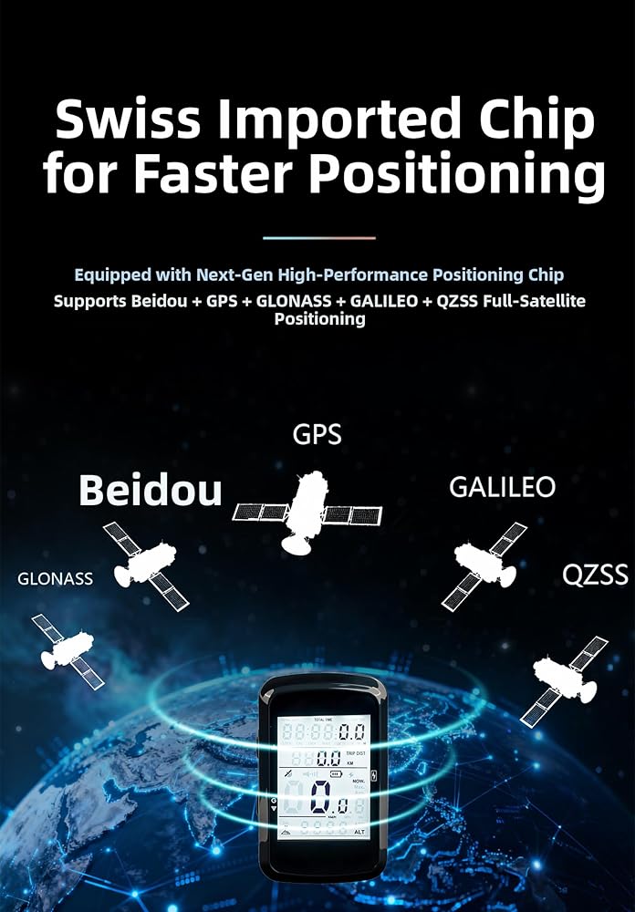 【High-Accuracy GPS with 5 Satellite Systems】 Equipped with advanced 5-star positioning (Beidou, GPS, GLONASS, GALILEO, QZSS), this bike computer offers faster signal acquisition and higher accuracy. Accurately track your route, real-time speed, altitude, and distance during every ride. Ideal for road cyclists and MTB riders seeking precise performance data.
