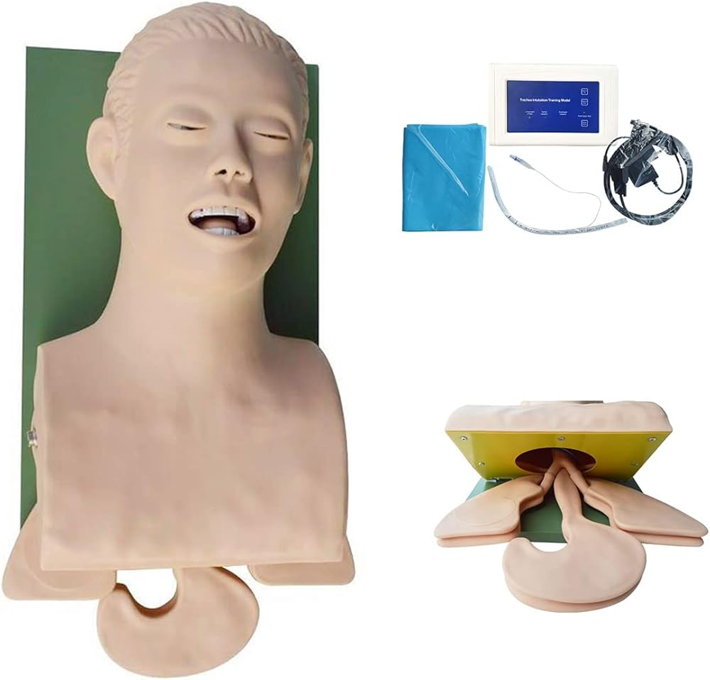 Characteristics:There may be training operations to oral nasal intubation and teaching demonstration.During training operation to the oral and nasal intubation, insert the correct functioning of the respiratory tract, the electronic display and music playback function to the lungs inflate gas.driving operation for oral and nasal intubation, incorrect operation inserts the esophagus, the electronic display and the alarm function. Expansion of stomach gas.An error that causes tooth laryngoscope pressure, electronic alarm function.Observed and compared to the normal side and the other side becomes large pupils.Characteristics:Voltage: 110-220VProduct Weight: 18 lbsShipping Size: 22.83 "x 13.39" x 17.7 "The package includes:1 x Intubation of airway management trainer