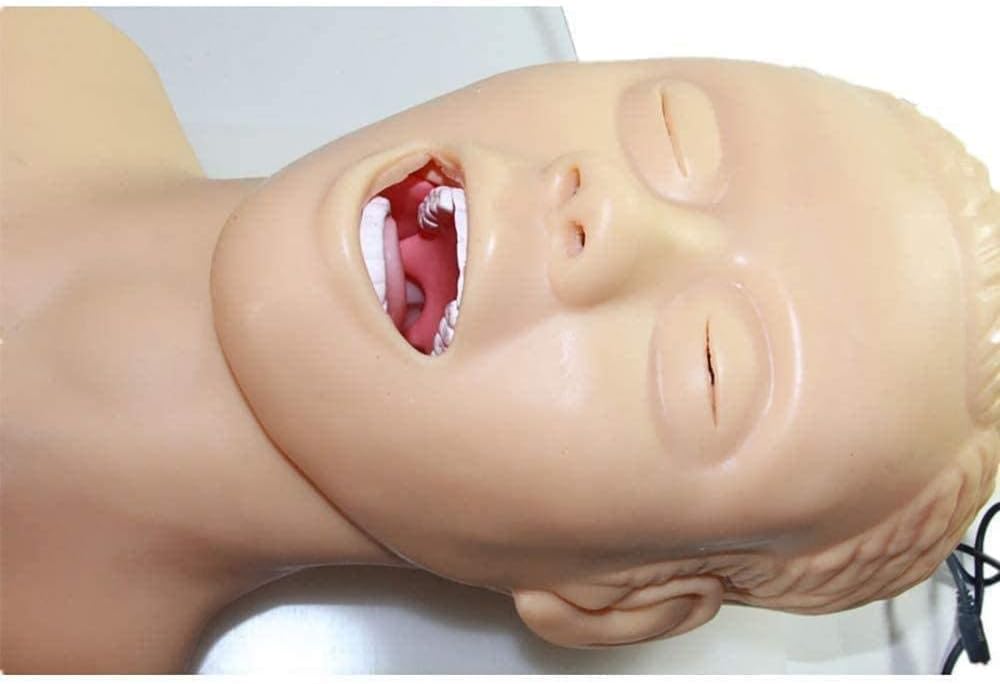 Features: 1. Activity of the lower beard and the realistic operation experience brought by the movement of the cervical spine. 2.The correlation of exposed trachea, esophagus, nasal cavity, cervical spine and other sections. 3. The laryngoscope presses the teeth to give an alarm sound. The items that can be trained using this product are: Transoral endotracheal intubation 2. Nasal endotracheal intubation 3. Fiber optic cannula Weight: 8kg