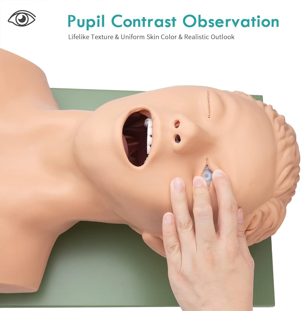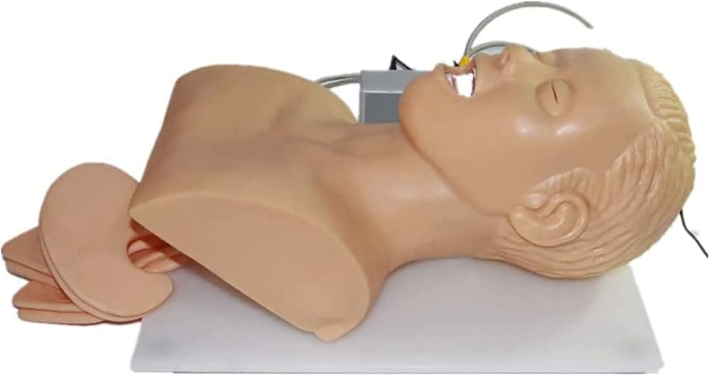 The items that can be trained using this product are:1.Transoral endotracheal intubation2. Nasal endotracheal intubation3. Fiber optic cannulaWeight: 8kgOne side of the human tracheal intubation training model is designed to be completely open, and the exposed section visually shows the anatomical structure of the trachea and nasal cavity as well as the movement of the cervical spine.This model is suitable for the visual demonstration teaching model of medical institution intubation. It can be used for oral and nasal intubation training and teaching demonstration.During the training operation of the nasal and tracheal intubation, insert the correct operation into the airway and have electronic display and music functions; the air supply expands the lungs and injects air into the airbag fixation tube.In the training operation of oral and nasal intubation, the wrong operation is inserted into the esophagus, and it has electronic display and alarm function. Gas supply causes swelling of the stomach.In the training operation of oral and nasal endotracheal intubation, the wrong operation will cause the laryngoscope to exert pressure on the teeth, and it has an electronic display and an alarm function. It was observed that the mouth contrasted with a normal pupil on one side and dilated to indicate the puncture site of the annulus.
