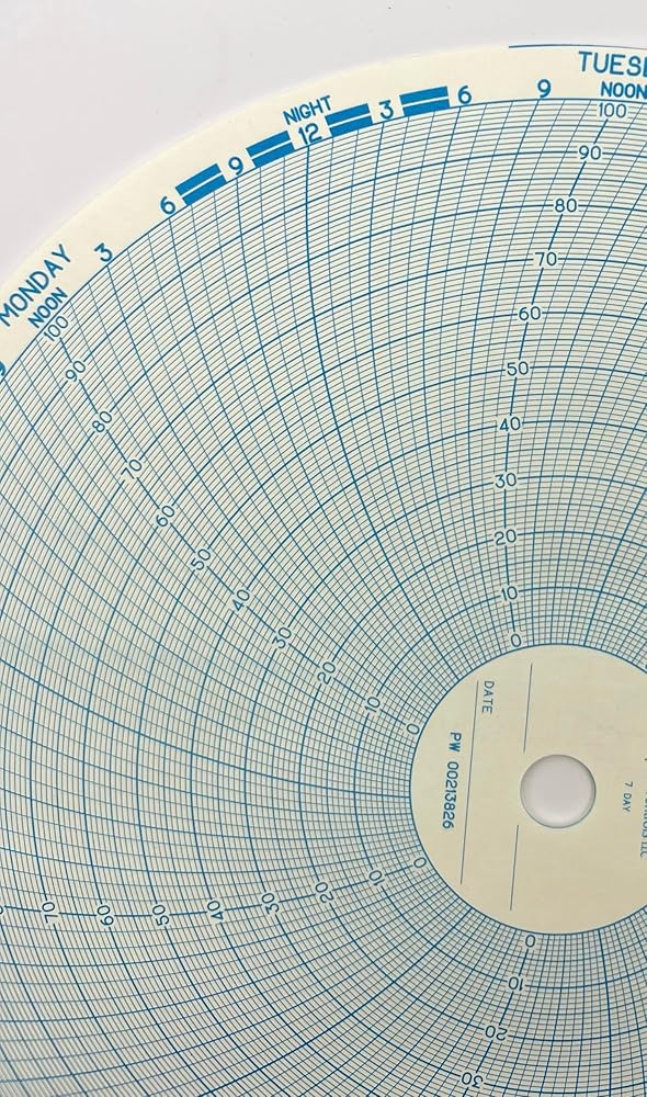 ورق رسم بياني دائري من Partlow PW00213826، دوران لمدة 7 أيام، نطاق 0-100، حزمة-100 مخطط