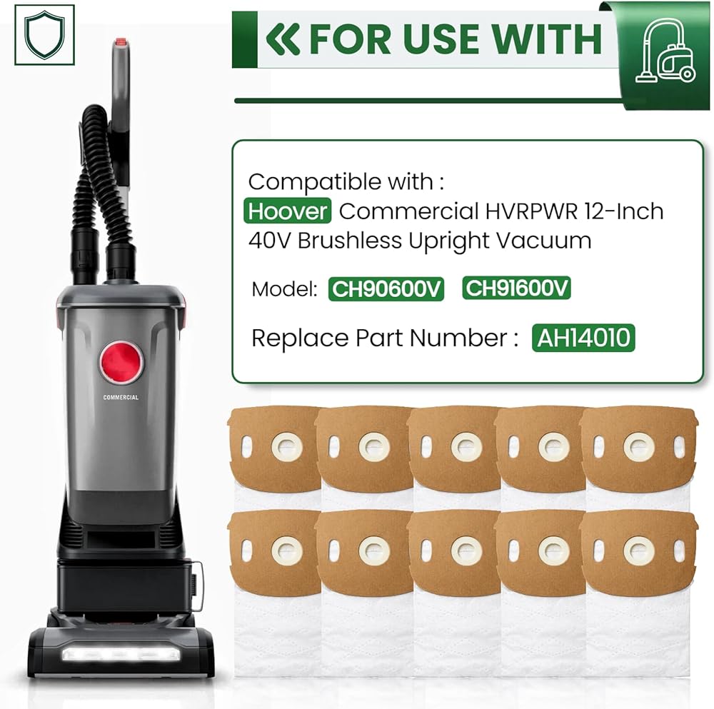✅ توافق مثالي: تم تصميم أكياس الغبار هذه خصيصًا لمجموعة المكنسة الكهربائية العمودية بدون فرشاة HVRPWR مقاس 12 بوصة 40 فولت من Hoover CH90600V وCH91600V، تحل محل جزء أكياس المكنسة الكهربائية Hoover رقم AH14010