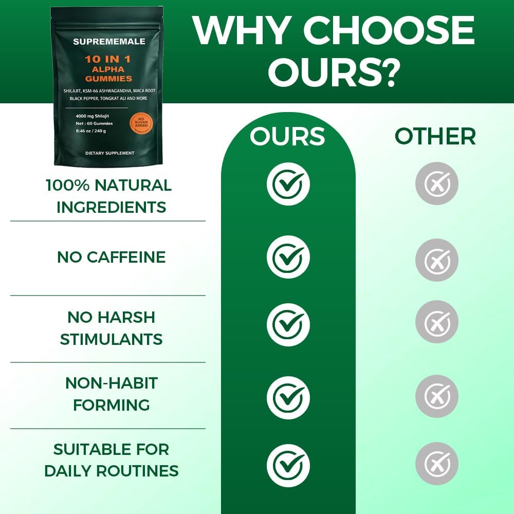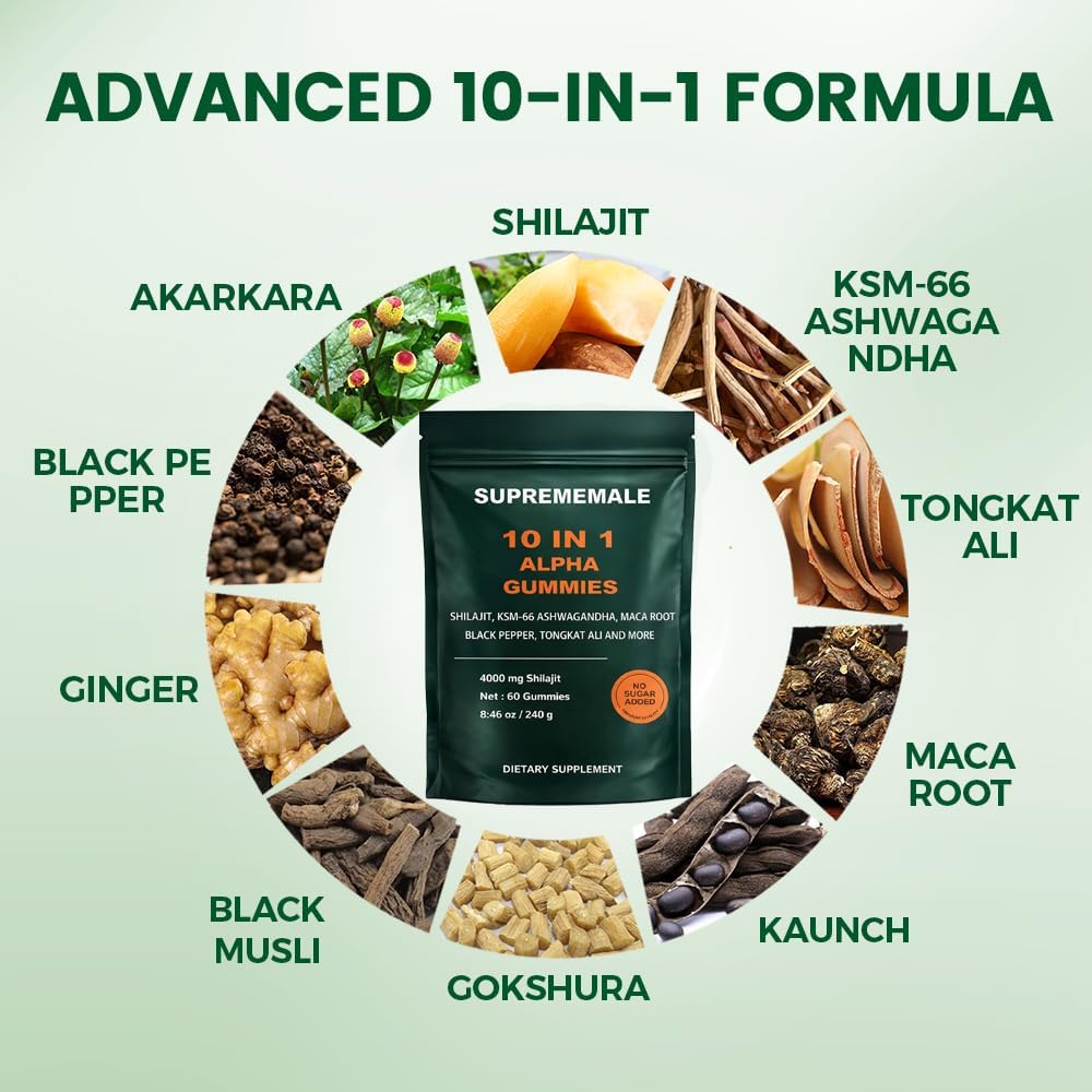 • 【Suprememale Alpha Gummies】Formulated with carefully selected ingredients including Shilajit, Ginger, Black Pepper
