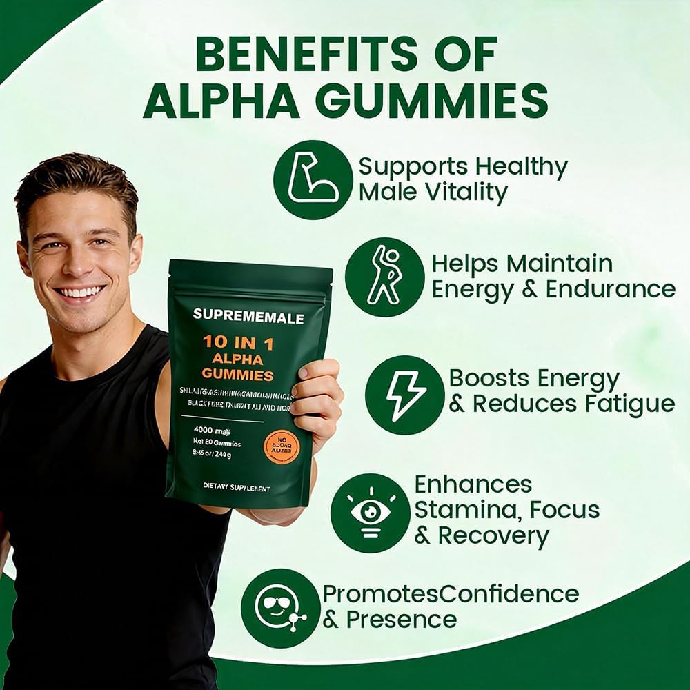• 【Clean Formula】Alpha gummies for men are natural, pure, non-GMO, and completely vegetarian