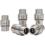 - Stainless steel tool holders compatible with HSK25E, HSK32E, HSK40E, ER16 and ER20ms, suitable for standard machining setups.