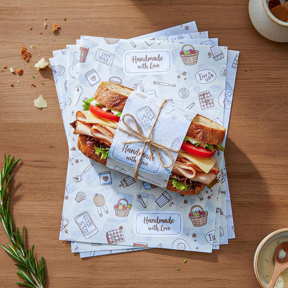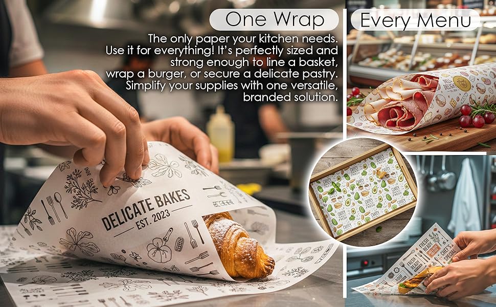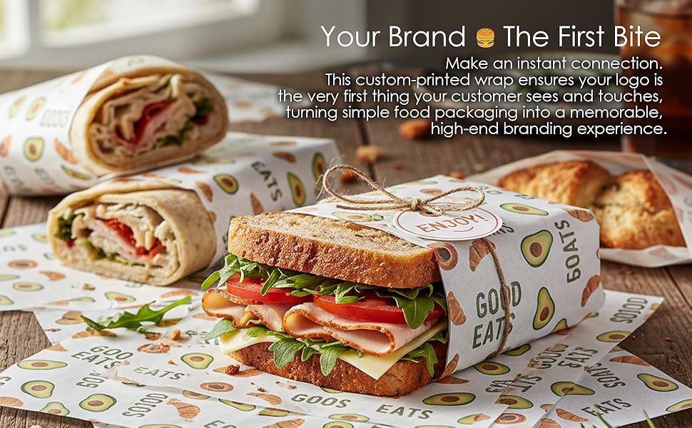✨ ارفع علامتك التجارية على الفور: حوّل كل عنصر غذائي إلى فرصة تسويقية باستخدام ورق تغليف الطعام المطبوع حسب الطلب. اعرض شعارك وتصميمك الفريد من خلال طباعة احترافية نابضة بالحياة تترك انطباعًا دائمًا لدى عملائك وتحول التغليف البسيط إلى بيان علامة تجارية متميزة.