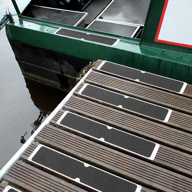 The CUTE THINGS & CC Flat Anti-Slip Plate transforms hazardous wet or icy surfaces into safe, secure walkways. Measuring 4.5" x 25", this black grit anti-slip plate features a durable weatherproof aluminum base designed to withstand the toughest environmental conditions. Perfect for high-traffic steps, pathways, docks, and ramps where frost, water, or moisture creates dangerous slipping hazards, this plate provides reliable traction when you need it most. The flat design offers a high-traction surface that meets NFSI, OSHA, and CoF compliance standards, ensuring workplace safety requirements are satisfied. Installation is quick and straightforward with 6 pre-drilled holes that allow you to securely bolt the plate down for a lasting solution. The aluminum construction resists water, chemicals, and wear, making it ideal for areas where traditional anti-slip tape simply won't hold up. Whether you're outfitting commercial facilities, marine environments, or industrial spaces, this anti-slip plate delivers dependable performance in slippery conditions to help prevent serious injuries.