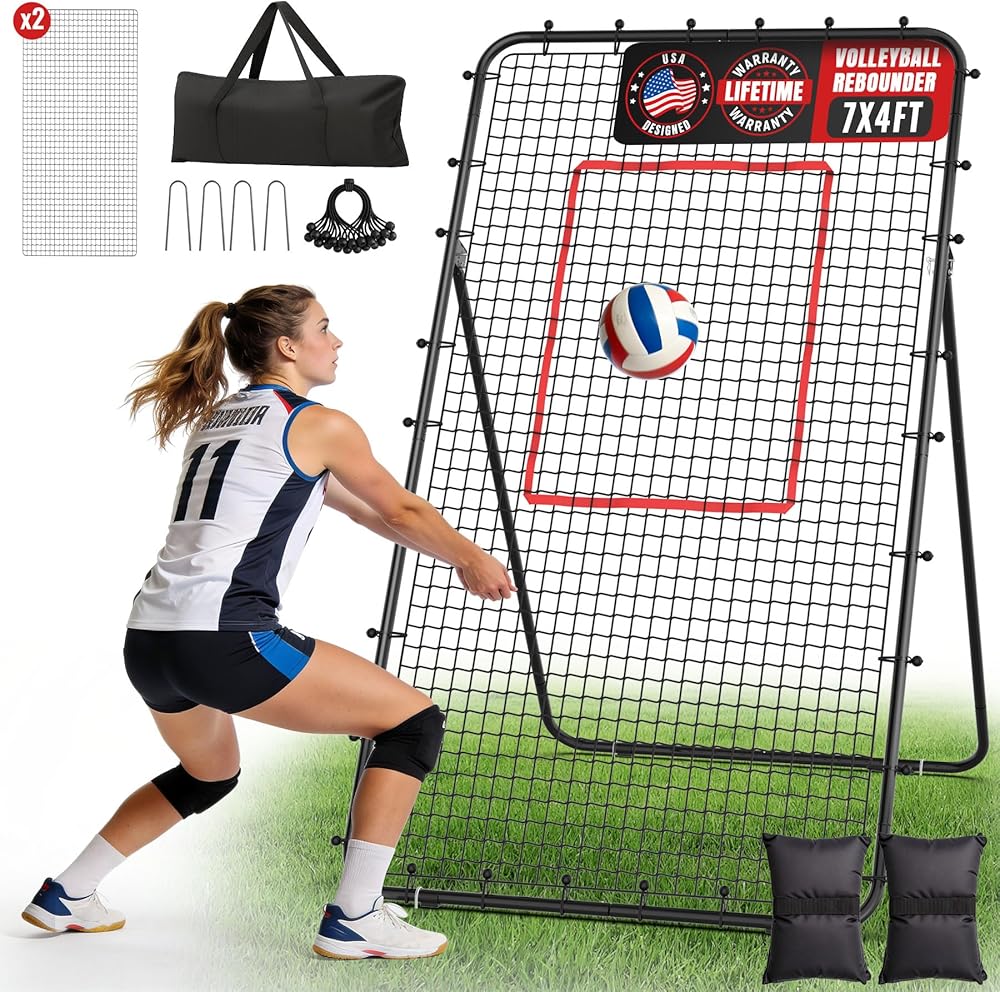 【Portable & Folds Flat in Minutes】This foldable rebounder volleyball packs into its carry bag. Take this portable 7x4 ft volleyball rebounder anywhere. Set up your rebound net volleyball gym in minutes.