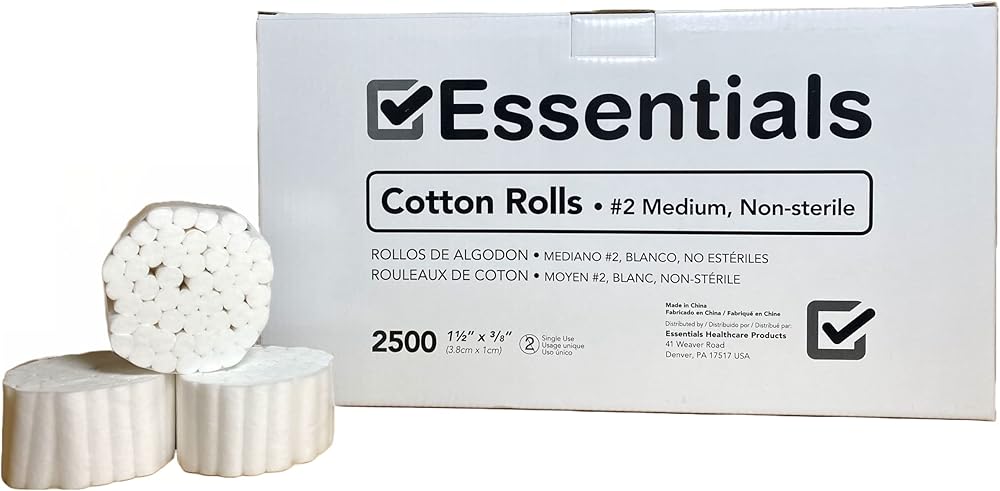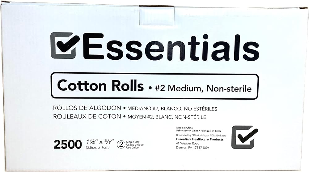 • 2,500 ROLLS: Includes one (1) full case of 2,500 Essentials Cotton Rolls, size 1 1/2" x 3/8".