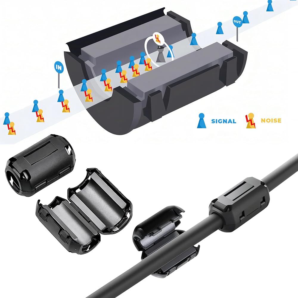 • Effective EMI & RFI Noise Suppression: Snap-on ferrite core filters reduce electromagnetic and radio-frequency interference, improving audio and signal quality across your devices.