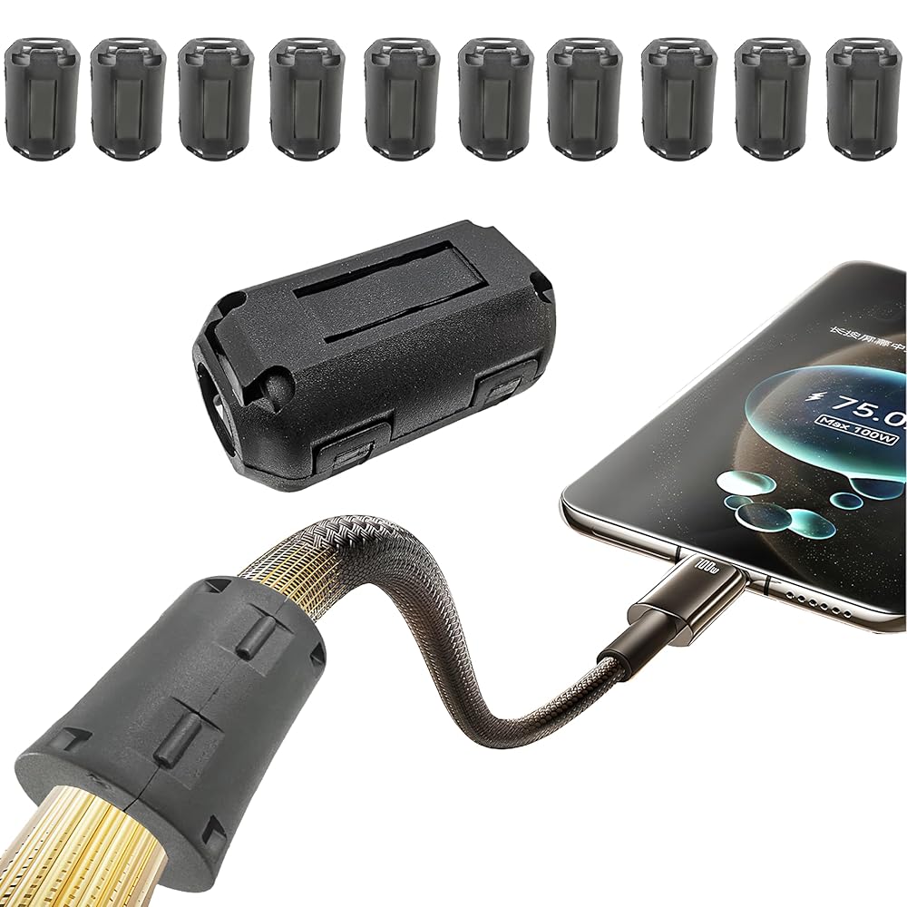 Struggling with static noise, signal drops, or buzzing speakers? Our 10 Pcs Ferrite Core Noise Suppressor Clips offer a simple yet effective solution to eliminate high-frequency EMI and RFI interference. Whether you're working with USB cords, HDMI cables, audio systems, or power supplies, these ferrite chokes help stabilize signal integrity and reduce unwanted noise.
