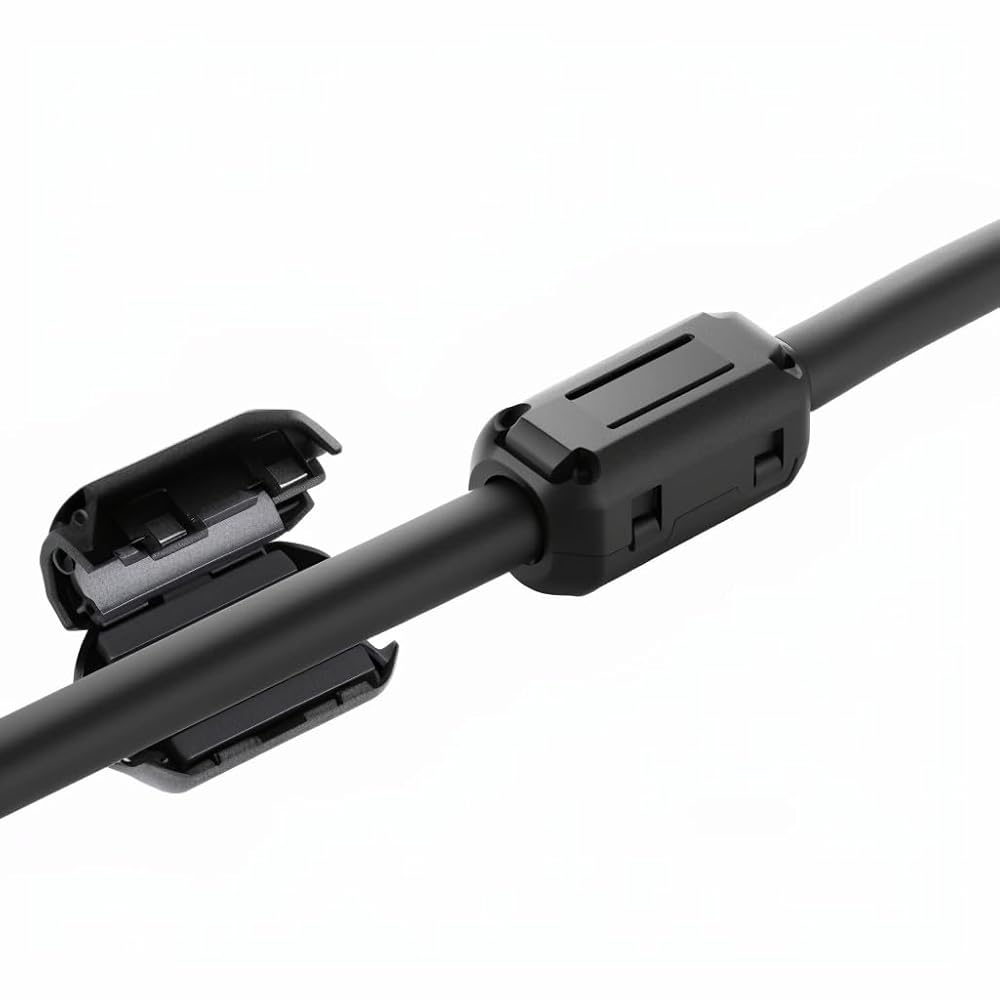 • Durable Build with Clip-on Design: Made of high-quality nickel-zinc ferrite and sturdy plastic housing. Easily clips onto cables—no tools or disassembly required.