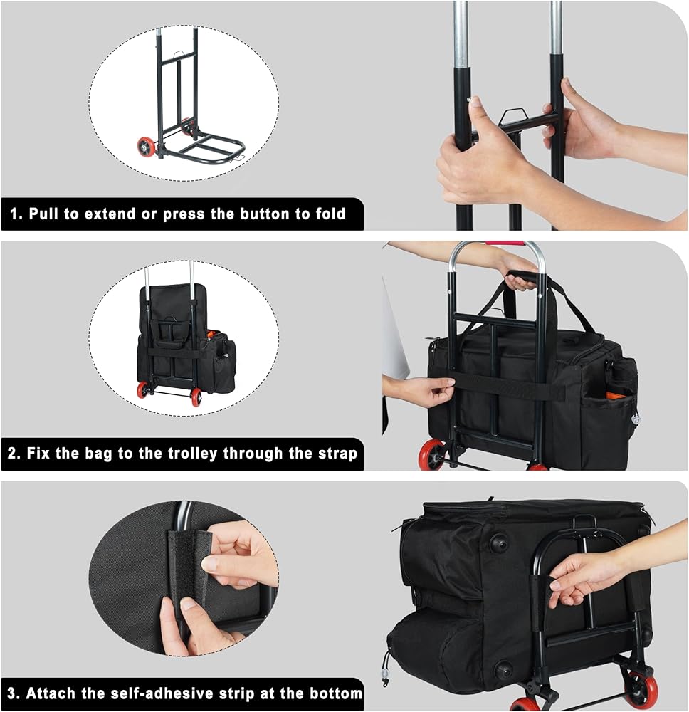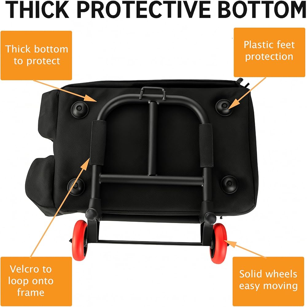 مرفق عربة ثابت من أجل دوران سلس: - قاعدة لاصقة وحلقة آمنة بالإضافة إلى حزام إبزيم خلفي يبقي الحقيبة مغلقة بإحكام بإطار العربة - مما يقلل من التذبذب ويمنحك حركة تدحرج واثقة في الطريق إلى العربات.