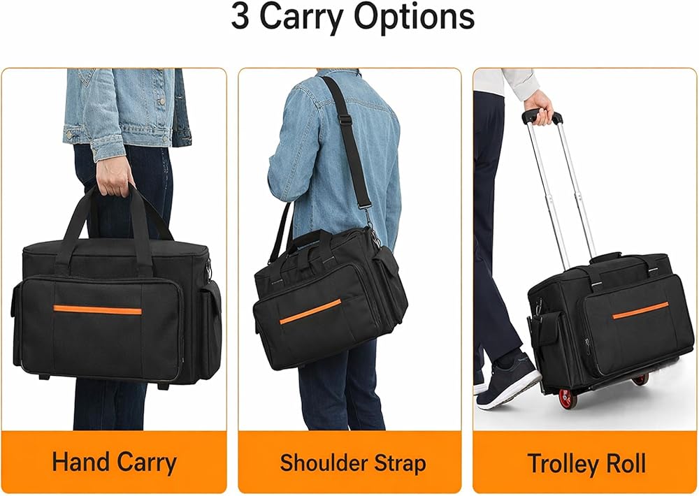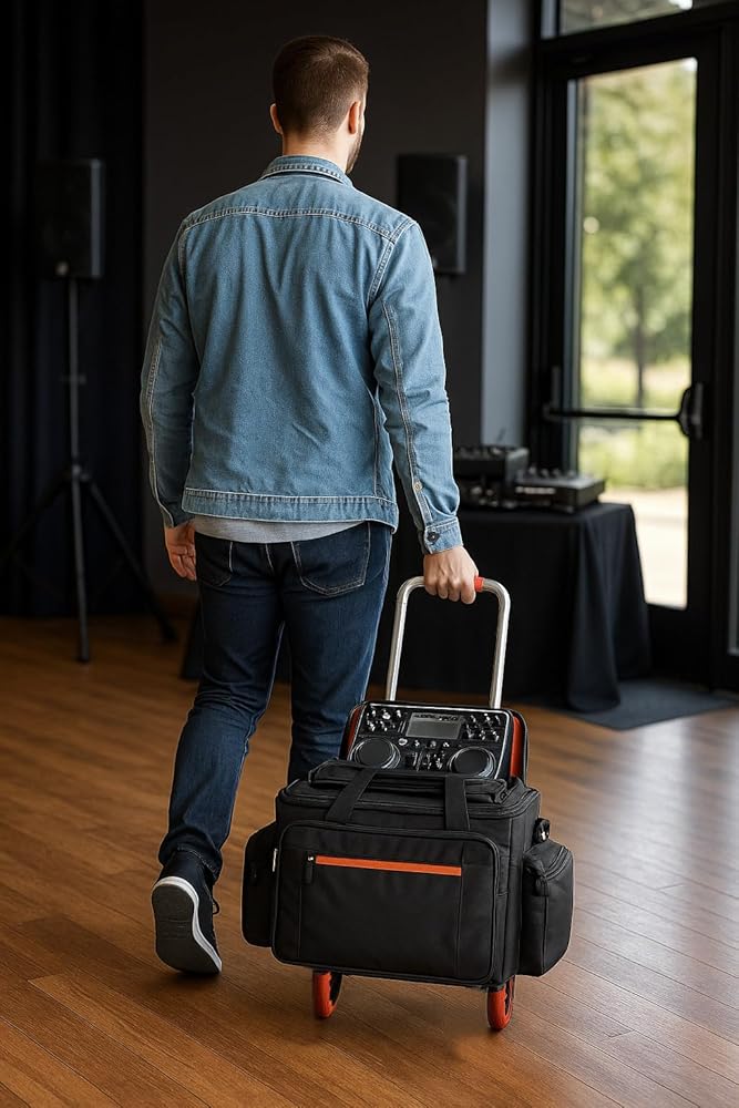 مصمم خصيصًا لمنسقي الموسيقى العاملين: - مقاوم للماء ومقوى مصنوع من البوليستر المقاوم للماء 1680D مع خياطة معززة ومقابض مبطنة وحزام كتف مريح. مصممة لتحمل الأحمال الأسبوعية وأيام السفر الطويلة.
