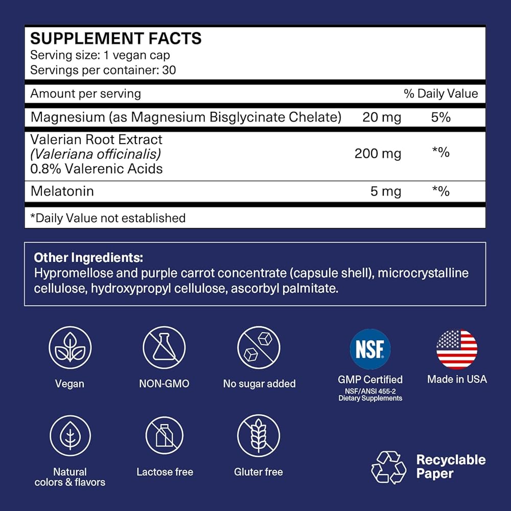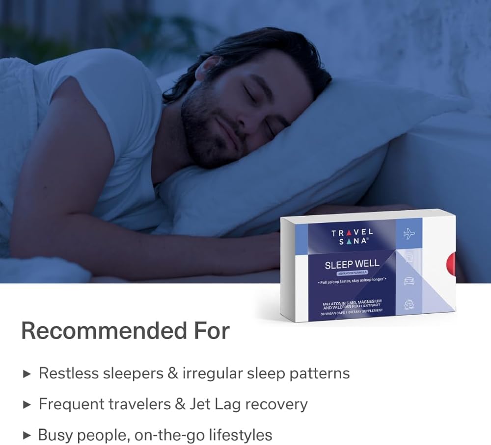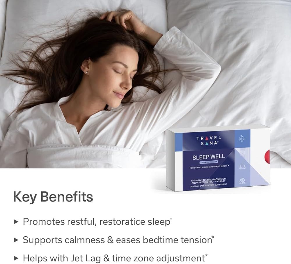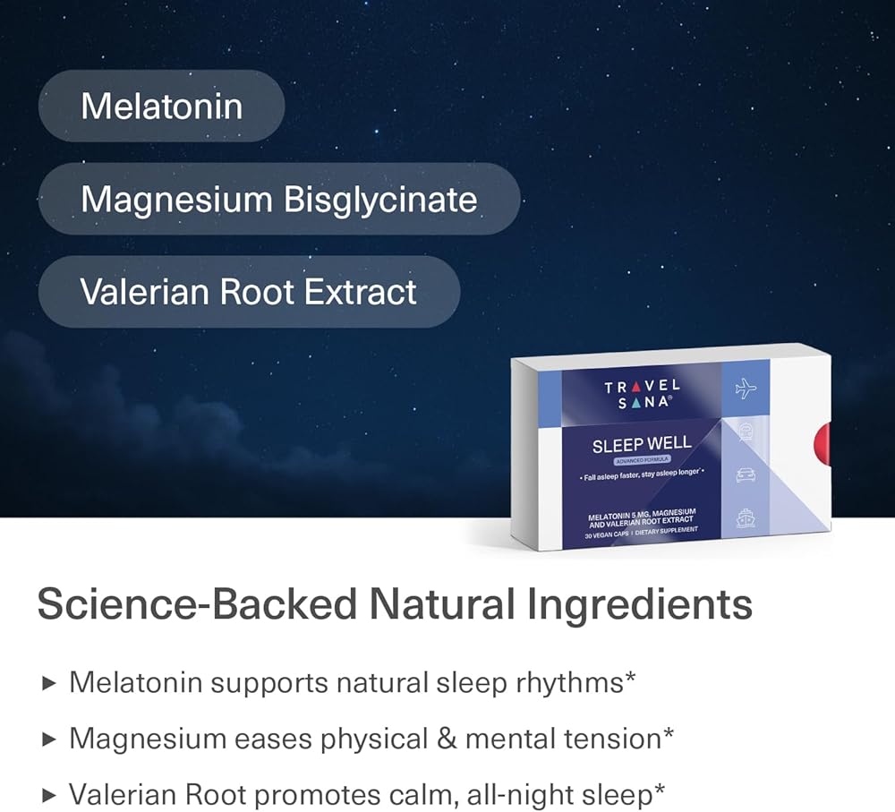 ملصق نباتي ونظيف: تم تصميم Sleep Well Advanced للمسافرين الذين يركزون على الصحة، وهو نباتي وخالي من الغلوتين والقمح واللاكتوز والسكر والكافيين وغير معدل وراثيًا.*