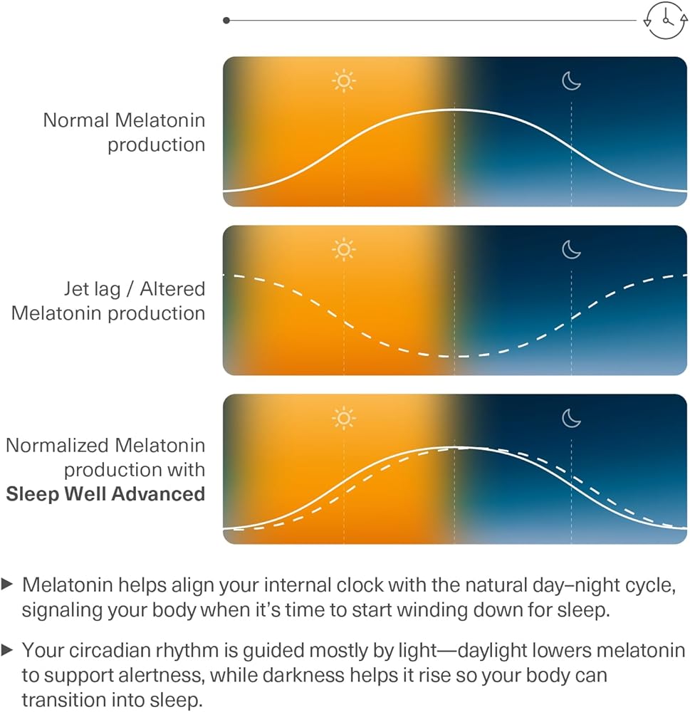 استرخ بشكل طبيعي، واستيقظ منتعشًا: انجرف إلى نوم مريح مع تركيبة Sleep Well Advanced. تم تصميمه بعناية لتشجيع الهدوء وتخفيف التوتر العرضي في وقت النوم. يساعد الميلاتونين على تنظيم توقيت النوم، ويدعم نبات الناردين الراحة الطبيعية، ويعزز المغنيسيوم توازن الجهاز العصبي واسترخاء العضلات، مما يساعدك على استقبال يومك الجديد وأنت تشعر بالانتعاش والنشاط.*