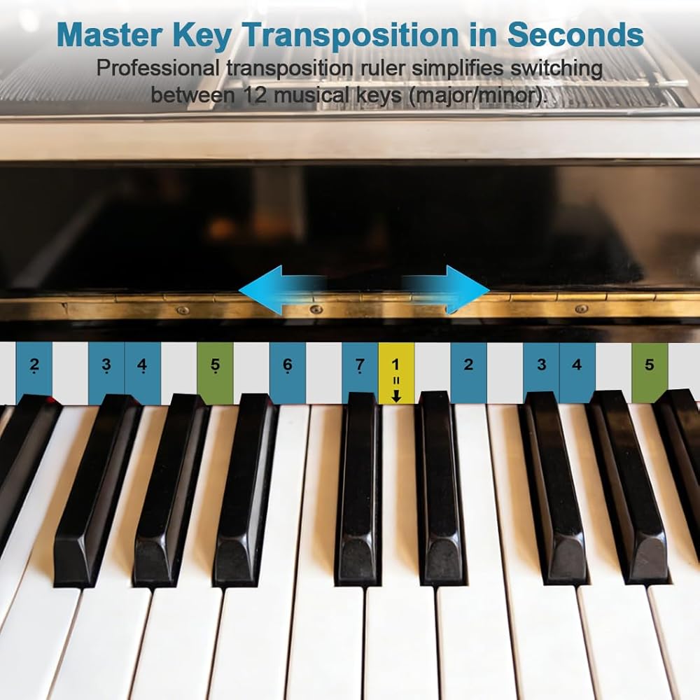 تبديل المفتاح الرئيسي في ثوانٍ: تعمل مسطرة النقل الاحترافية على تبسيط التبديل بين 12 مفتاحًا موسيقيًا (رئيسي/ثانوي). يمكنك العثور على الفور على النوتات الموسيقية المقابلة لأي مفتاح، مما يجعلها مثالية لممارسة تمارين التبديل وتشغيل الأغاني بمفاتيح مختلفة وفهم نظرية الموسيقى.