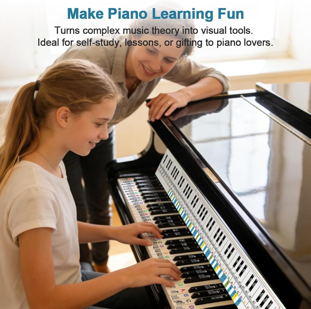تبسيط تعلم نظرية الموسيقى: تحويل المفاهيم المعقدة (مواضع النوتة الموسيقية، تبديل المفاتيح) إلى أدوات مرئية وسهلة الفهم. رائعة للدراسة الذاتية، أو دروس الموسيقى، أو كهدية لعشاق البيانو - تقلل من منحنى التعلم وتجعل البيانو ممتعًا!