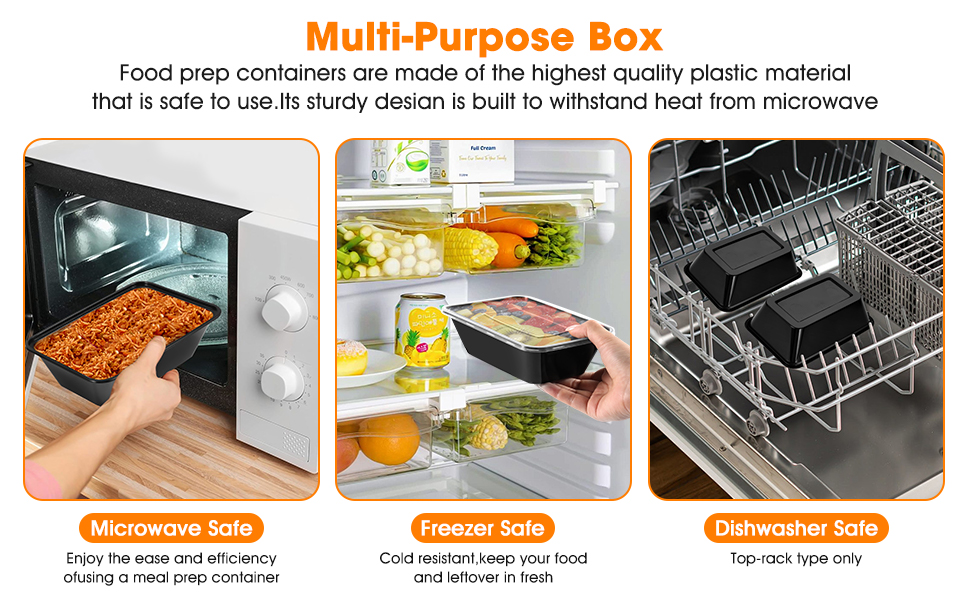 [قابلة لإعادة الاستخدام]: حاويات إعداد الوجبات، مصنوعة من البلاستيك عالي الجودة، لن تنكسر الوجبات الجاهزة.