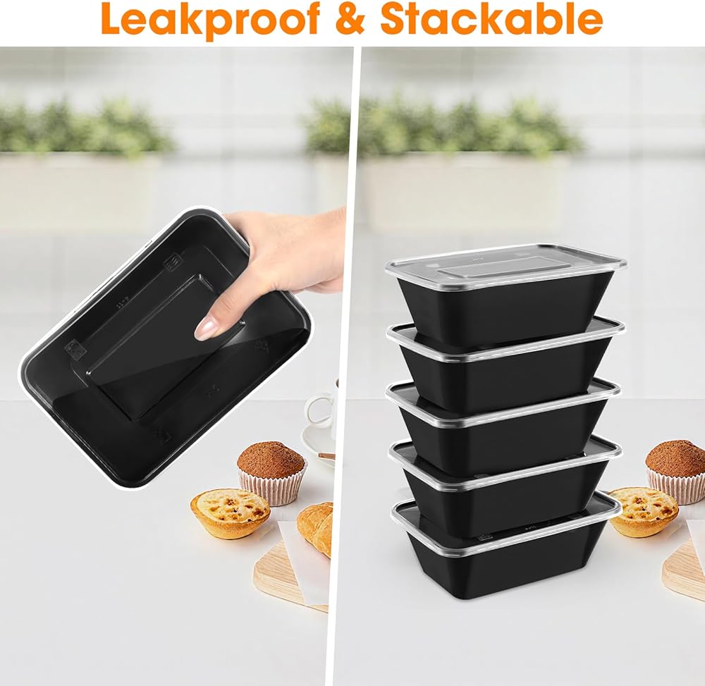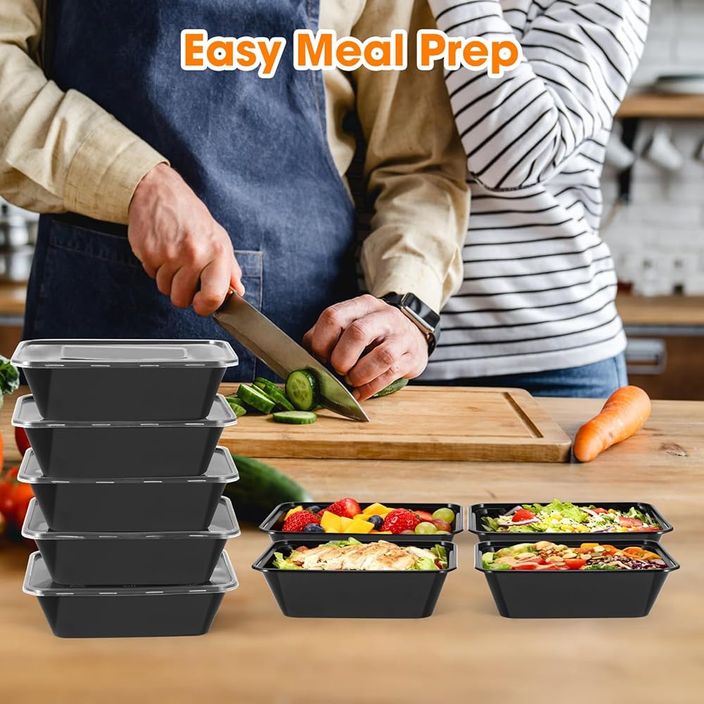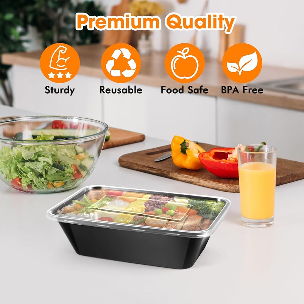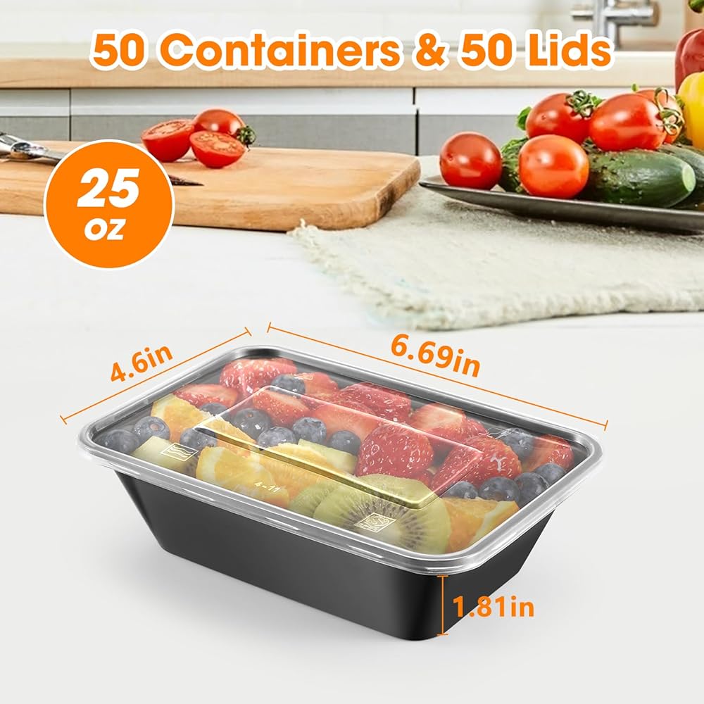 50 عبوة (100 قطعة) حاويات تحضير الوجبات بوزن 25 أونصة، قابلة لإعادة الاستخدام، سهلة الفتح بغطاء، آمنة للطعام، مناسبة لأفران الميكروويف والثلاجات وغسالات الأطباق، وصواني تخزين الطعام البلاستيكية