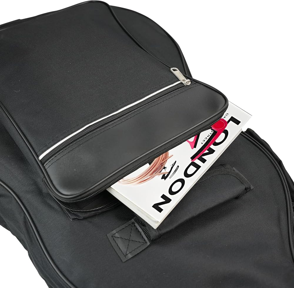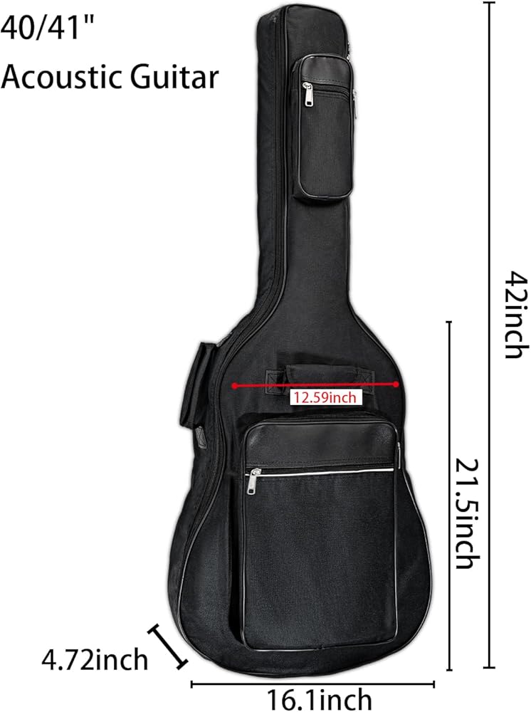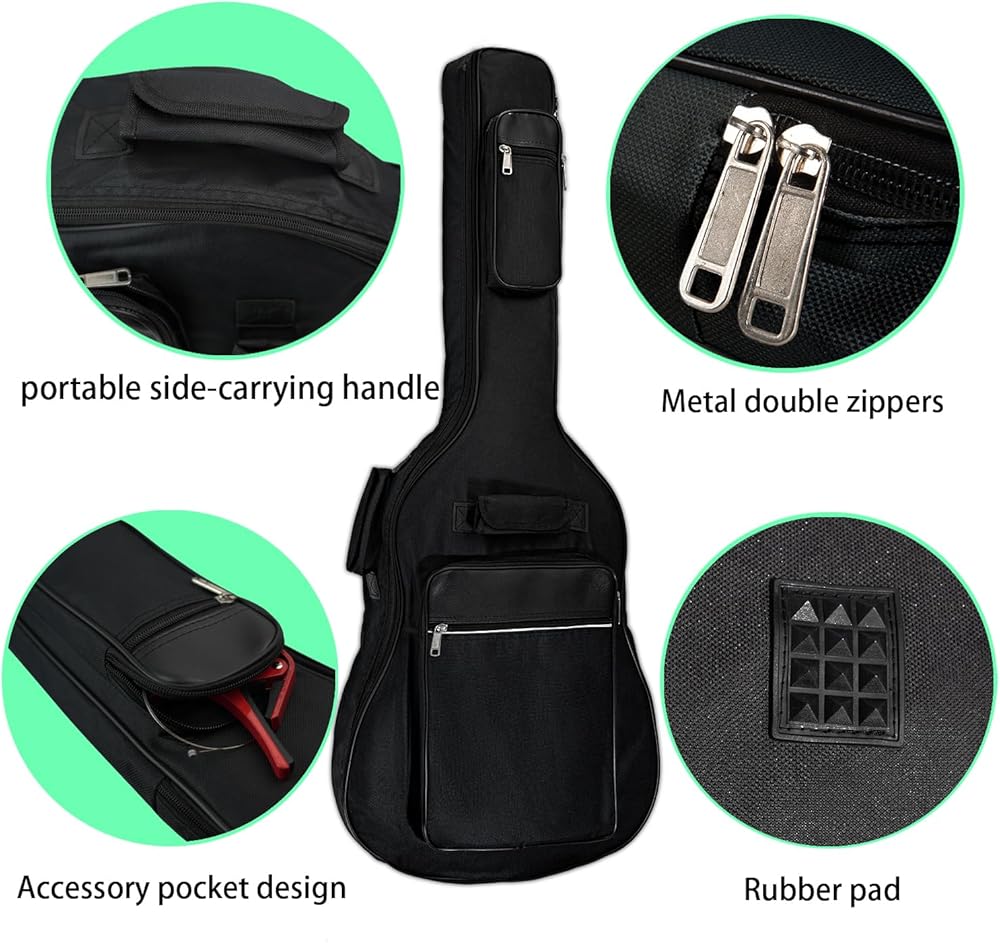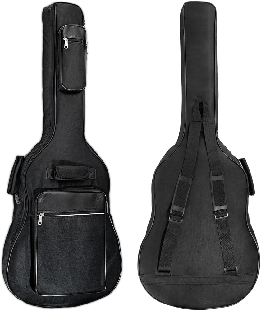 Protect your acoustic guitar with this versatile and practical gig bag, available in classic black, sleek gray, or stylish camouflage designs. The bag features multiple storage compartments, including a large front pocket and additional zippered pouches, perfect for storing accessories, sheet music, and personal items. Constructed with durable materials and reinforced stitching, this gig bag offers reliable protection for your instrument during transport. The comfortable carrying handle and adjustable shoulder straps make it easy to carry your guitar, while the thick padding helps cushion against bumps and minor impacts. The bag's universal fit accommodates most standard acoustic guitars, and its weather-resistant exterior helps shield your instrument from light rain and dust. Each pocket features smooth-running zippers with easy-grip pulls, ensuring quick access to your gear when you need it.
