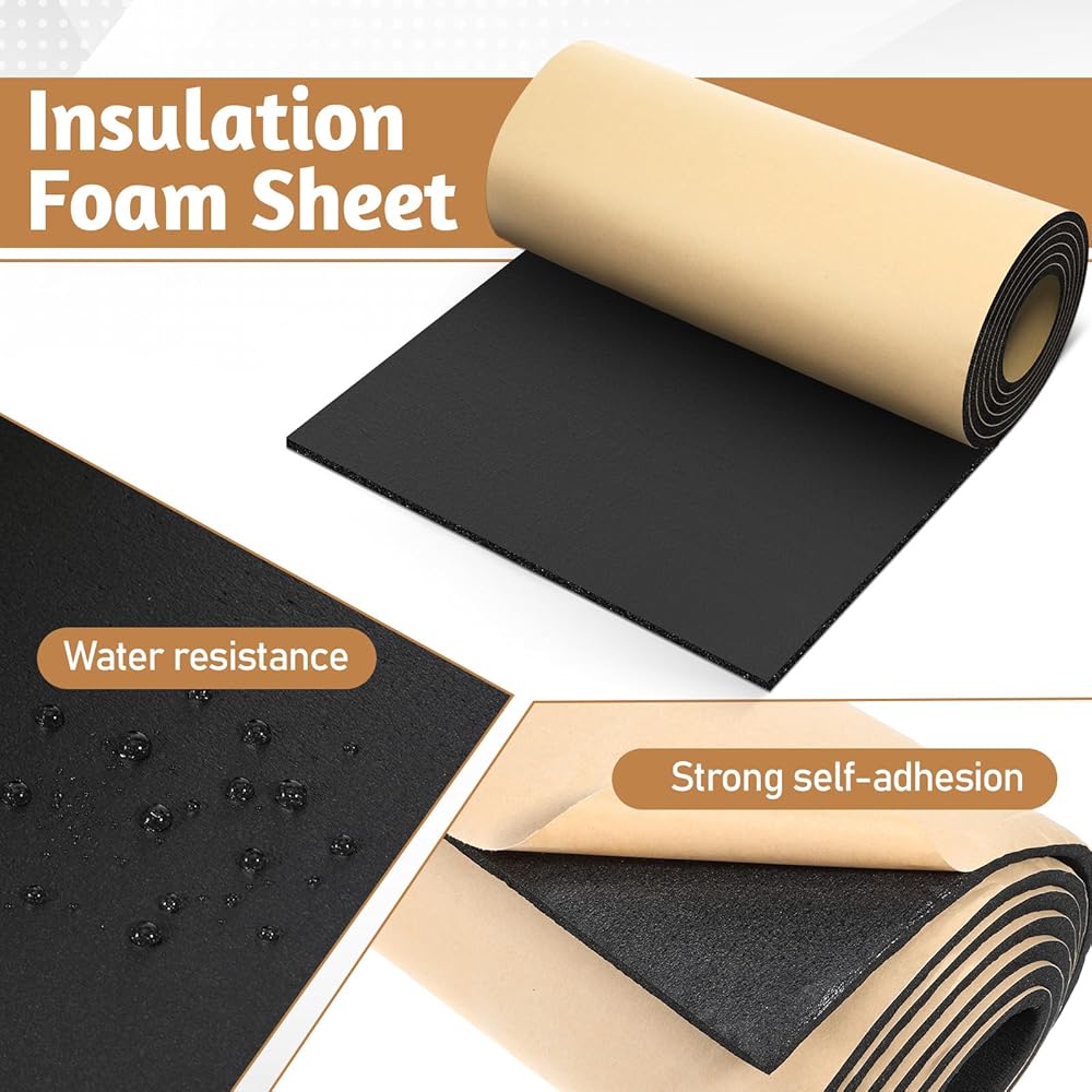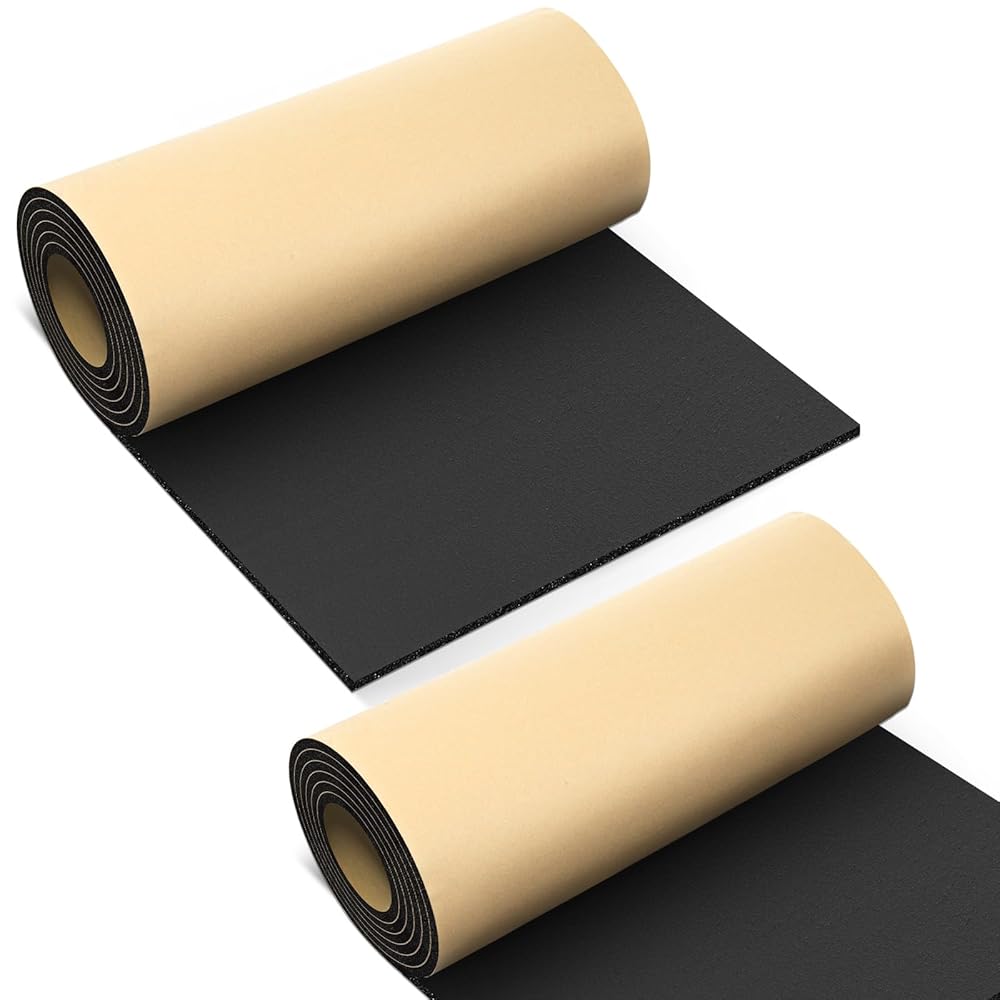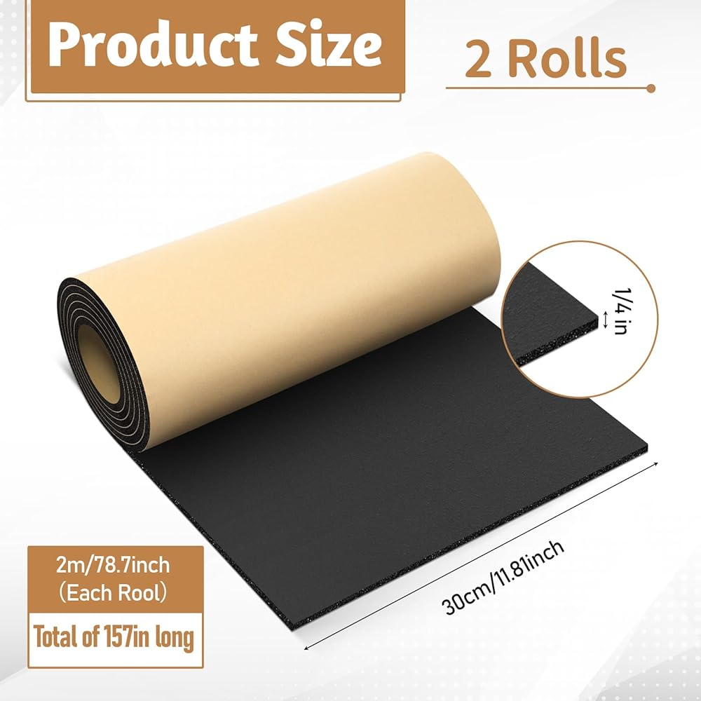 Size & Multi-Functional Insulation: You will receive 2 rolls of sponge neoprene with adhesive foam rubber sheet, each neoprene sponge foam sheet measures 1/4" Thick x 12" Wide x 78" Long, total of 157in long. With soundproofing, vibration damping, and thermal insulation, ideal for acoustic panels, EVA boat flooring, marine foam rolls, wall padding, equipment cushioning, and more.