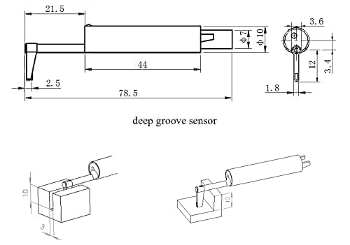 With deep groove sensor, it is possible to measure groove with width wider than 3mm and depth deeper than 10mm, or the surface roughness of step with height less than 10mm, Also can used to measure the planar, cylindrical used with platform. please see figure for detailed dimension.