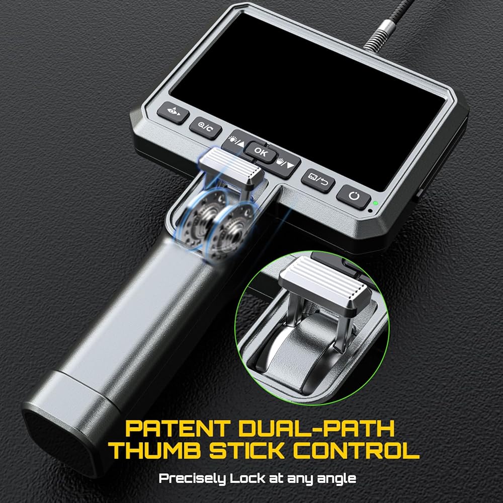 【وظيفة لا تقدر بثمن - رأس كاميرا مفصلية】عند التحكم عن بعد بكاميرا بوريسكوب بعيدًا، لا تتمكن من تحويل اتجاه كاميرا الثعبان مما يجعل فحصنا محدودًا للغاية ومحبطًا. الآن، ما عليك سوى الضغط على عصا التحكم AGC900D التي يمكنها تحويل اتجاه الكاميرا بسهولة في اتجاهين بمقدار 210 درجة لإجراء فحص شامل.