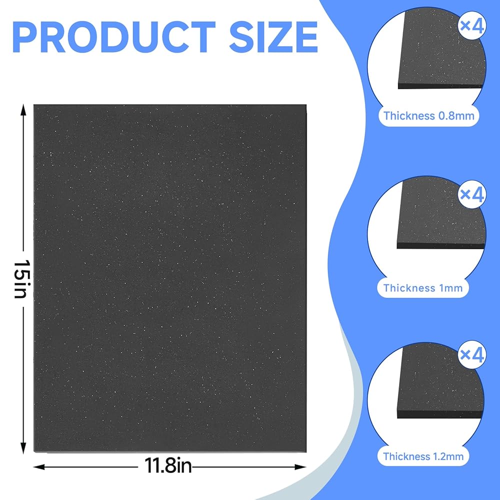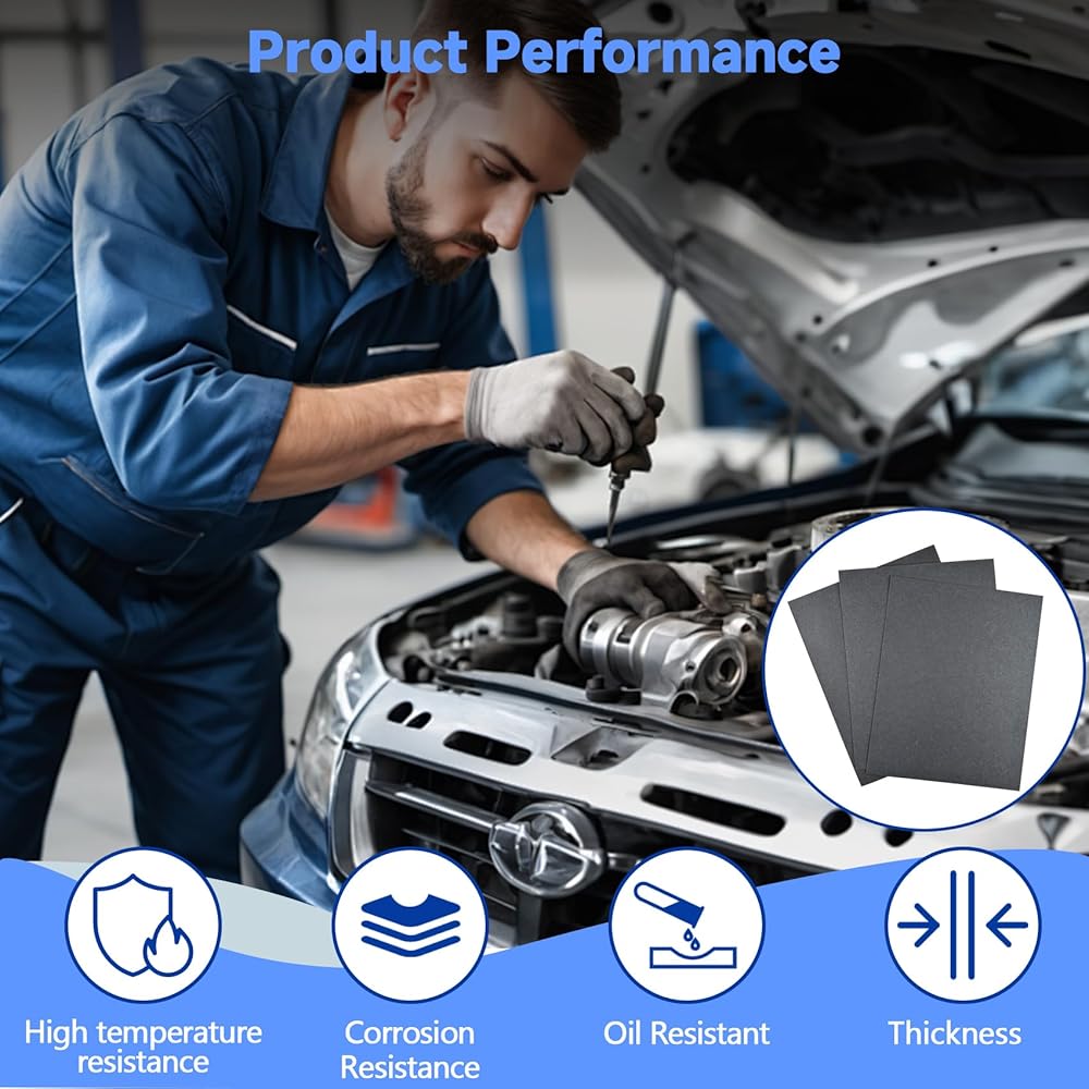 حزمة مثالية: سوف تحصل على 12 قطعة مقاس 15 بوصة × 11.8 بوصة من مادة الحشيات غير الأسبستوس، بما في ذلك 3 سُمك، 4 قطع بسُمك 1/32 بوصة (0.8 مم)، 4 قطع بسُمك 5/128 بوصة (1 مم) و4 قطع بسُمك 3/64 بوصة (1.2 مم)، يمكن قصها واستخدامها حسب الحاجة، مثالية لتخصيص احتياجاتك الفريدة من الحشية