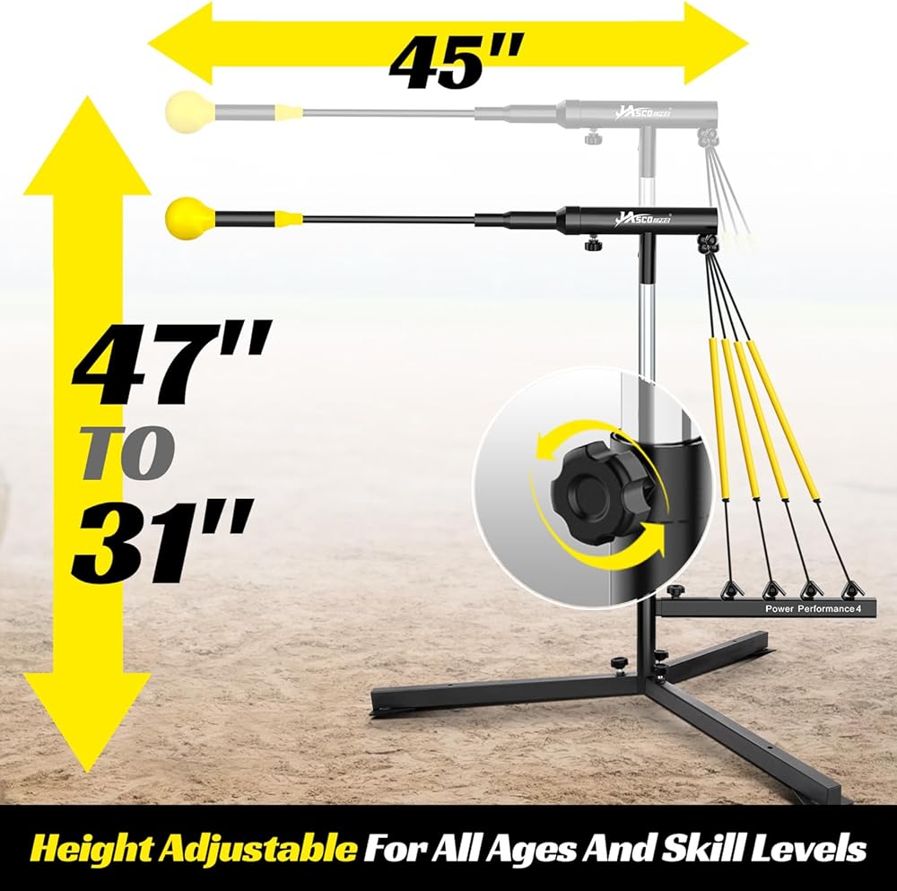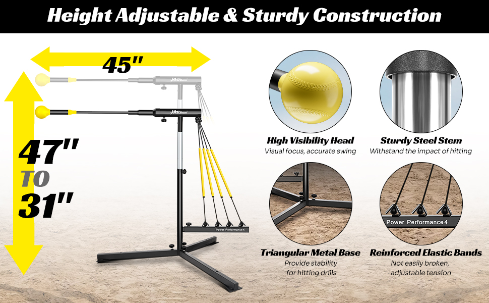 ⚾【ارتفاع قابل للتعديل لجميع اللاعبين】يمكن تعديل ارتفاع مدرب البيسبول المتأرجح من 31 إلى 47 بوصة لممارسة جميع مناطق الضرب - منخفضة ومتوسطة وعالية وداخلية وخارجية. إنه مثالي لجميع الأعمار ومستويات المهارة للاعبين.
