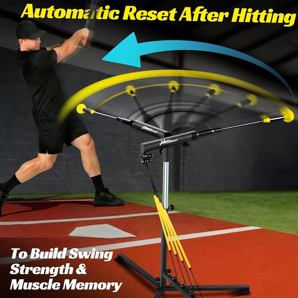 ⚾【تعليقات فورية لتحسين مهارة الضرب】مدرب ضرب البيسبول هذا برأس كرة عالية الوضوح و5 أشرطة طاقة قابلة للتعديل لتوفير تعليقات فورية على أرجوحتك. من خلال محاكاة الكرات السريعة، والكرات المنحنية، والتغييرات، تساعدك على تحسين توقيتك، وجودة الاتصال، ومسار التأرجح.