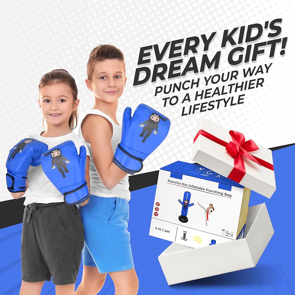• 🎁 ALL-IN-ONE GIFT BOX: You get 2 specialized punching bags, 2 pairs of gloves, pumps, and all necessary accessories. It's the ultimate screen-free, space-saving gift that parents love and kids adore.