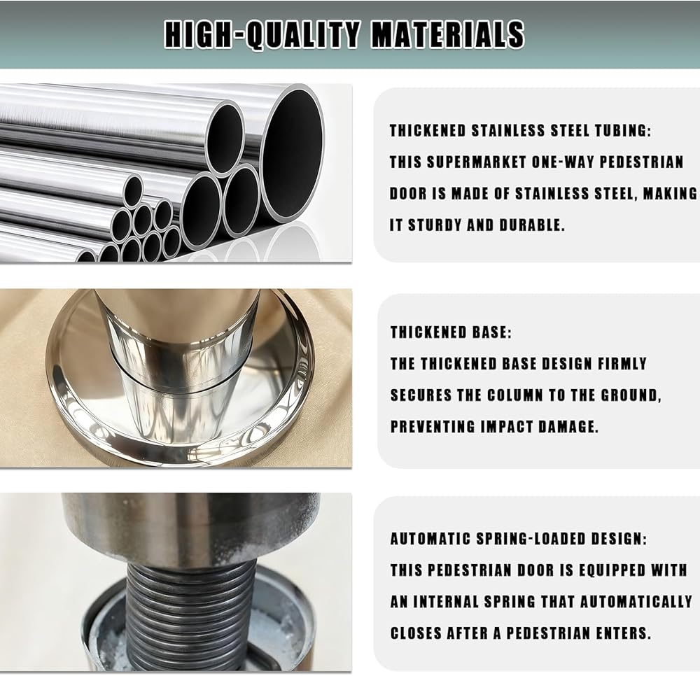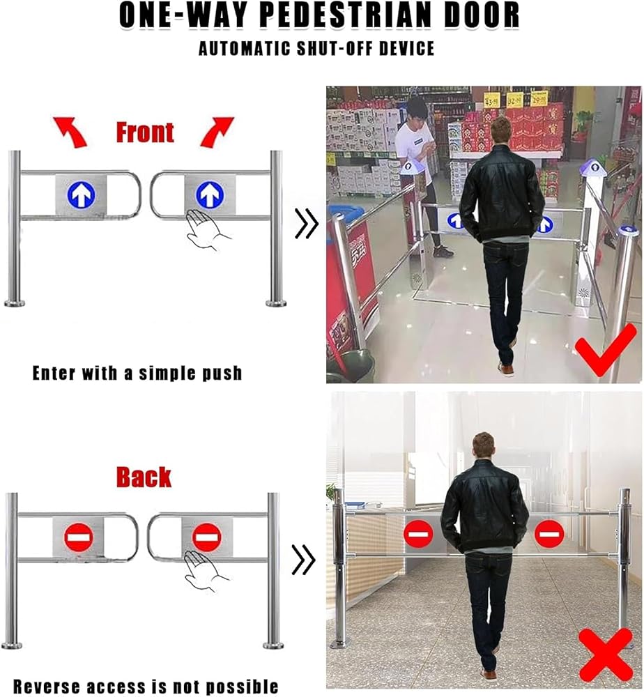 Unidirectional Hand-Push Design: This One-Way Channel Door effectively manages Customer Flow, ensuring Correct Entry while maintaining a Compact Footprint. Easy Installation and a Stylish Appearance make it Ideal for Various Public Spaces, enhancing Safety and Accessibility. Perfect for Retail Stores, Offices, and Event Venues.