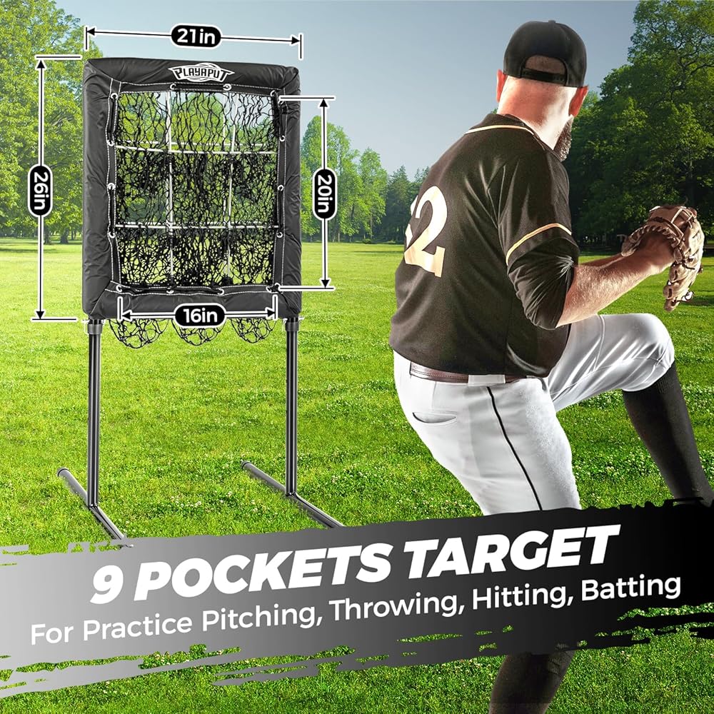 ⚾【شبكة رمي البيسبول ذات 9 فتحات】شبكة رمي 26 × 21 تحاكي منطقة الضرب الحقيقية، مما يساعد على تحسين دقة رمي/رمي البيسبول والكرة اللينة وبناء ذاكرة العضلات. توفر 9 جيوب للرمي موقع الملعب لضمان عمل اللاعبين على ضرب الهدف دون ضرب أو التقاط.