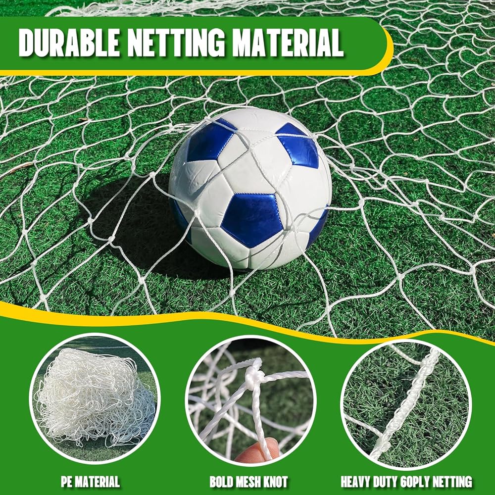 Portable & Space-Saving Design: The net folds into a compact, easy-to-carry size, making it convenient to transport to parks, beaches, or schoolyards for on-the-go play. When not in use, it stores neatly in closets, garages, or car trunks without taking up much space. Note that this is a net-only replacement—no goal frame or extra accessories are included, allowing you to reuse your existing frame and focus on the core need of a reliable, high-quality net.