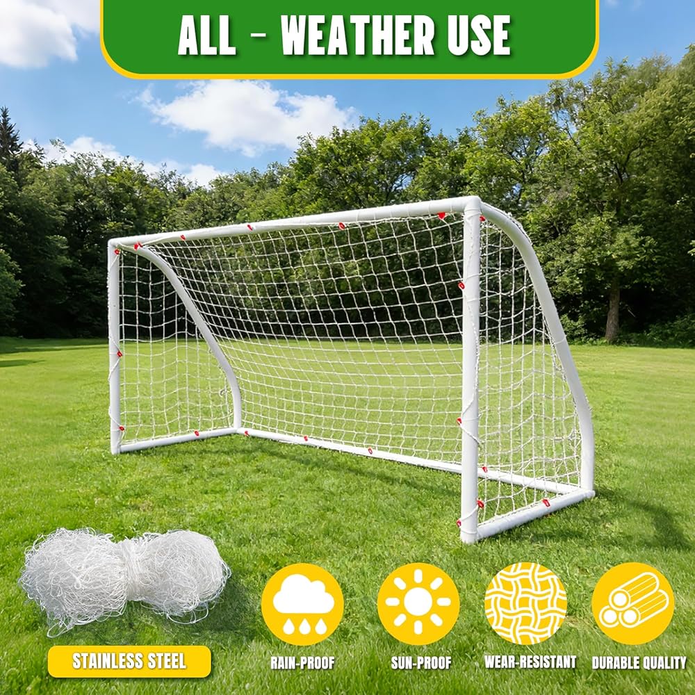 All-Weather Outdoor Durability: Designed for year-round outdoor use, this soccer net features sunproof and rainproof properties that resist UV damage and moisture buildup. It won't fade, crack, or degrade in extreme temperatures, making it suitable for backyard, park, or beach setups regardless of the season. Leave it outdoors without worry—its robust material ensures consistent performance in rain, shine, or wind.