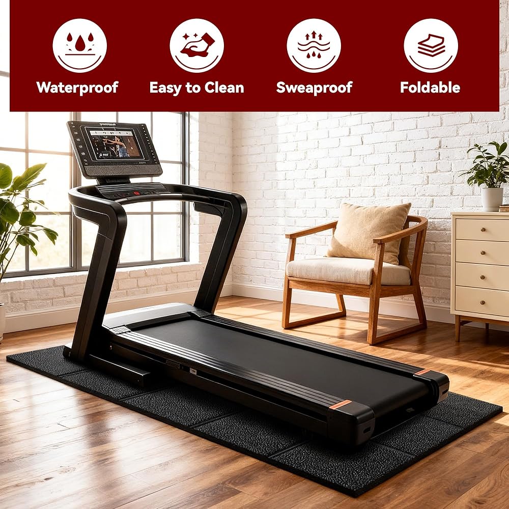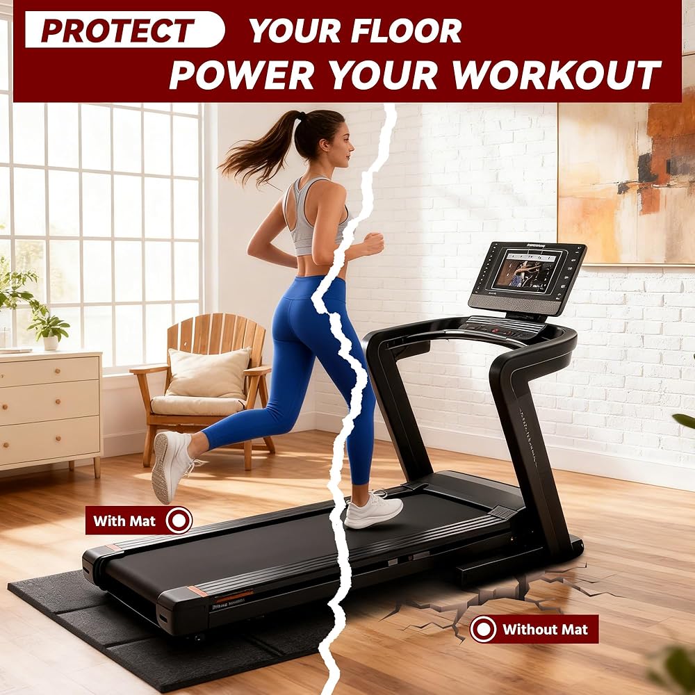 سجادة وسادة المشي - 79 بوصة × 99 بوصة، سجادة جهاز مشي غير قابلة للانزلاق لأرضيات السجاد والخشب الصلب، بساط تمرين ممتص للصدمات وبساط تحت جهاز المشي لحماية الأرضية في صالة الألعاب الرياضية المنزلية