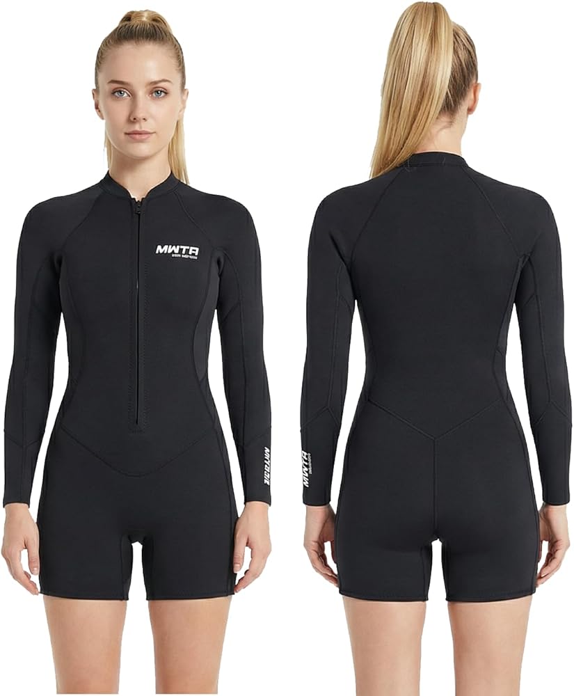 **Elegant Design**: Our front zip short sleeve wetsuit is specifically tailored for women, combining style with functionality. The sleek, form-fitting design not only looks great but also ensures maximum flexibility and comfort in the water.