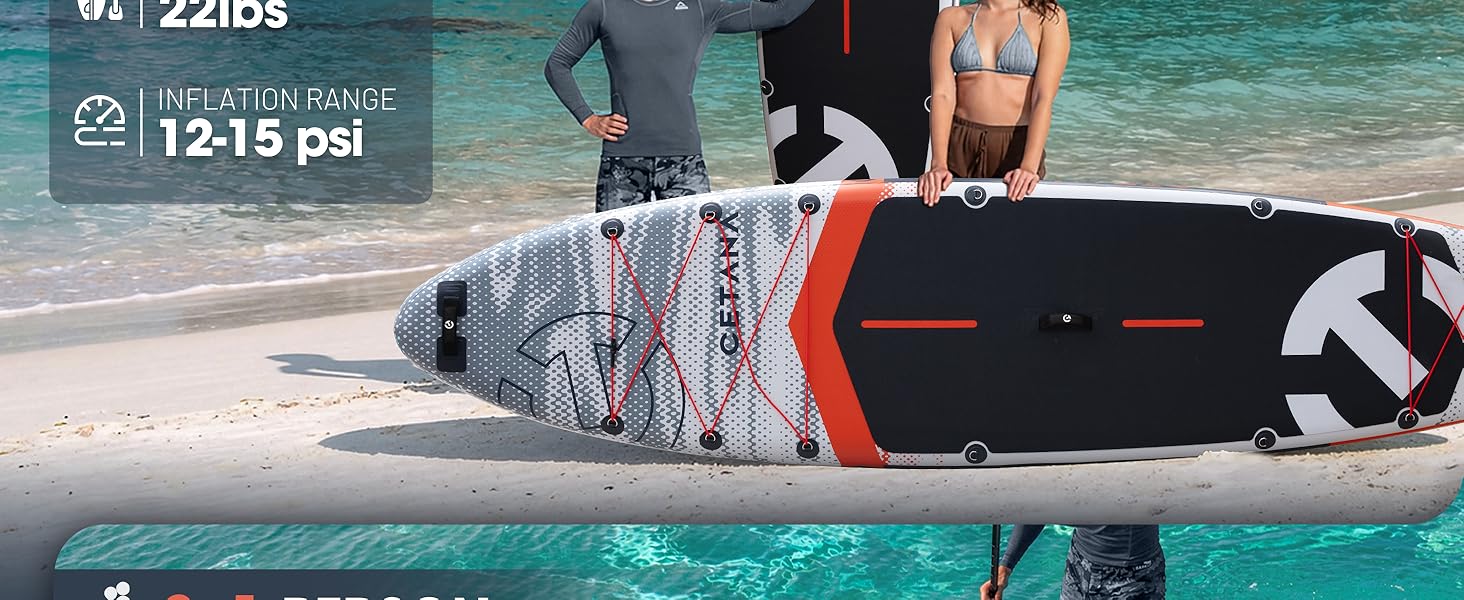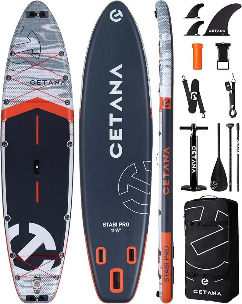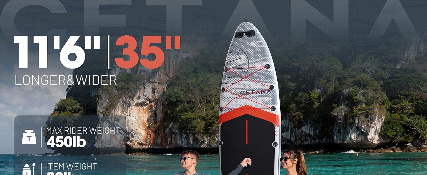 لوح تجديف قابل للنفخ واسع للغاية من CETANA مقاس 11'6 × 35 بوصة × 6 بوصة، سعة وزن عالية 450 رطل، لوح تجديف عريض وثابت للمبتدئين، لوح تجديف كبير من 2 إلى 3 أشخاص مع 3 زعانف، بنجي مزدوج، 15 حلقة على شكل حرف D