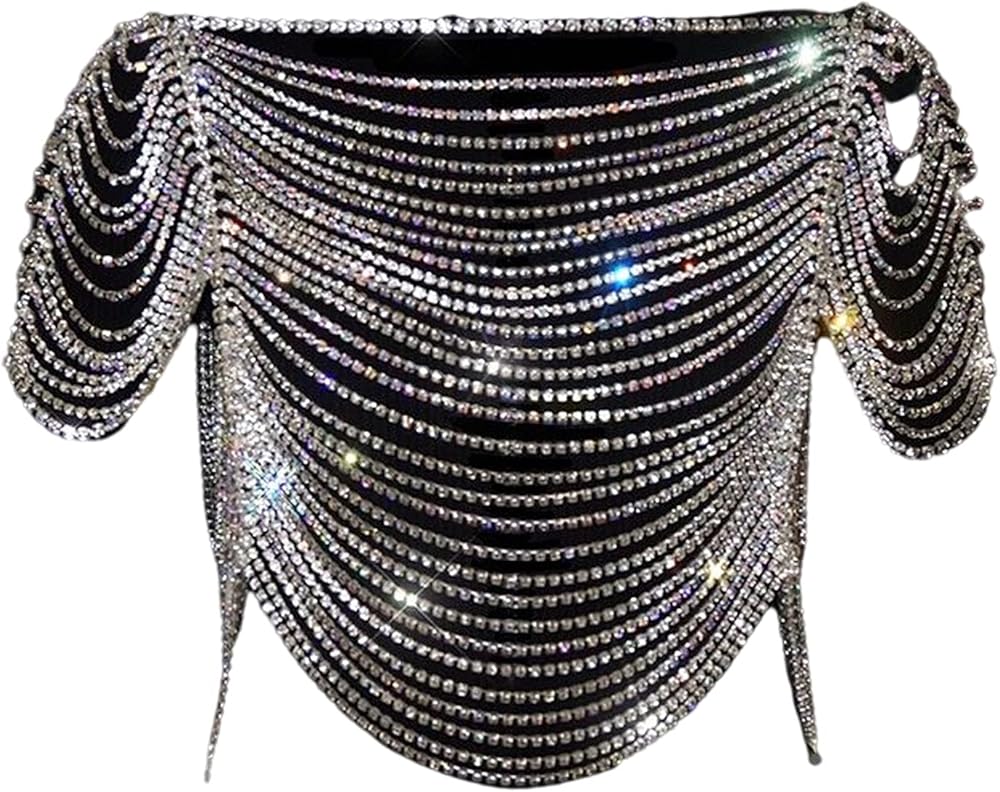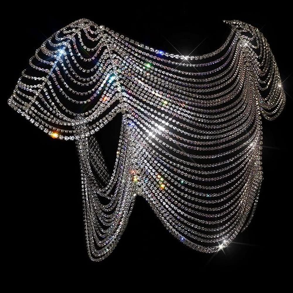 ستونفانز قلادة كتف وسلسلة للجسم للنساء، قلادة زعنفة للعروس من حجر الراين، سلسلة كتف للنساء، مجوهرات للجسم للسهرة، حجر الراين، بدون احجار كريمة